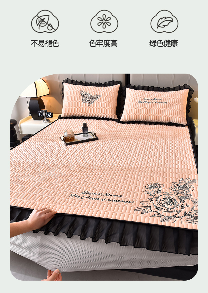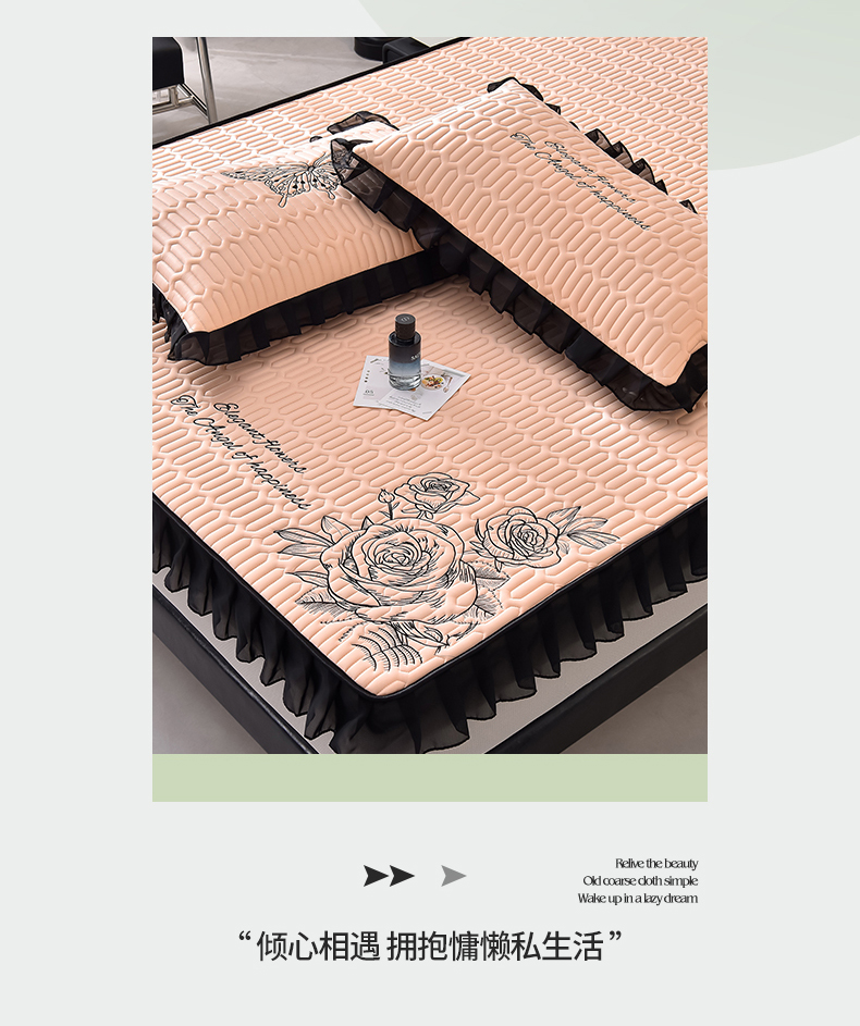 炫拼家纺 2025春夏新款A类凉感丝花边床笠款乳胶凉席-法式玫瑰 法式玫瑰-香妃粉