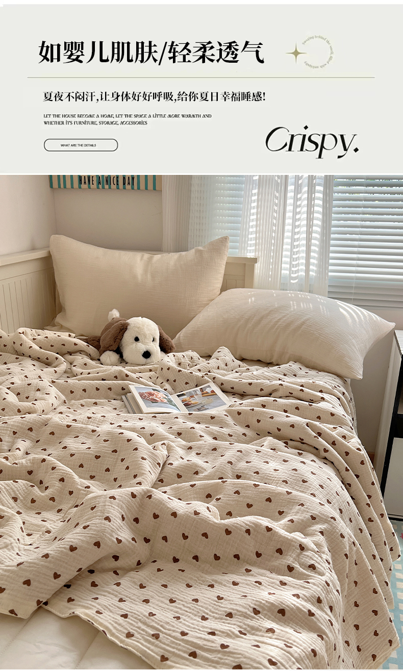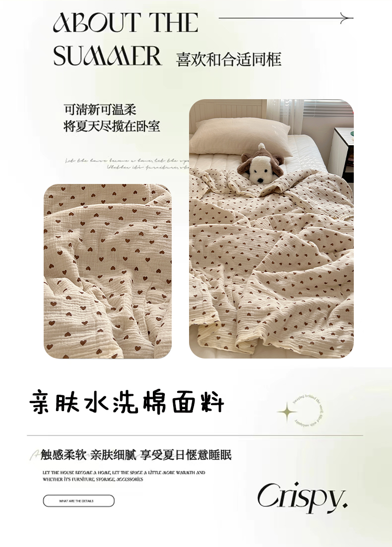 繁花家居 2025新款AA版水洗棉超软夏被直播热款 爱心咖