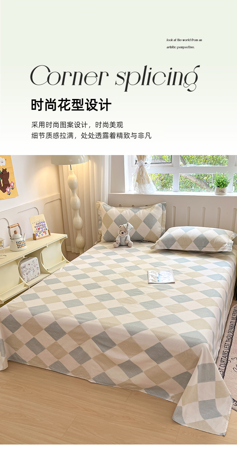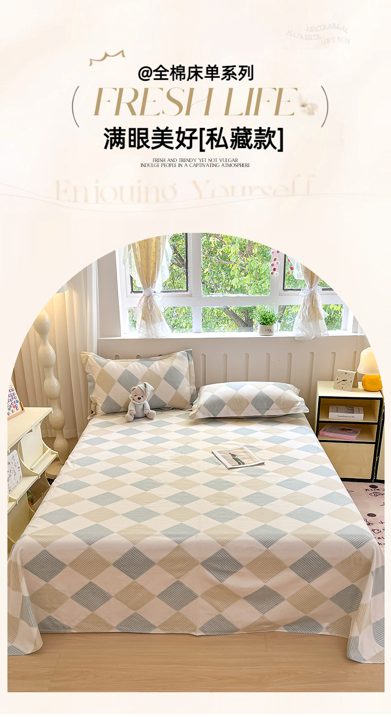 • 91家纺网 家纺一手货源 找家纺 大吉 2025新款亲肤舒适全棉纯棉喷气小清新印花系列单床单床单单件单品床单 向往