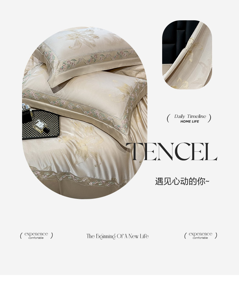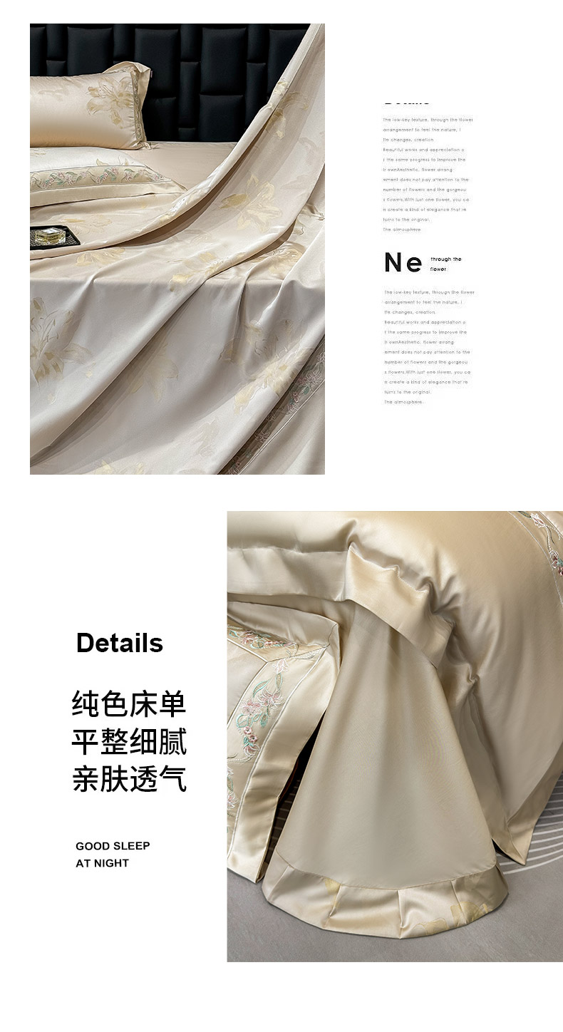 2025新款高端A类天丝棉提花四件套真丝轻奢刺绣丝滑裸睡长绒棉爆款床上用品-薇澜 薇澜-太妃金