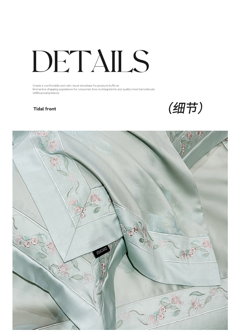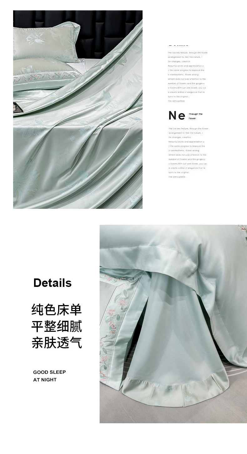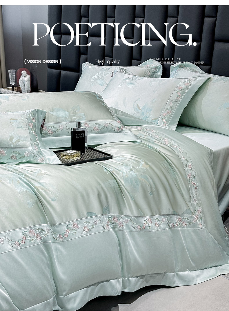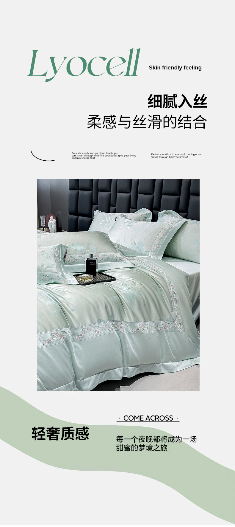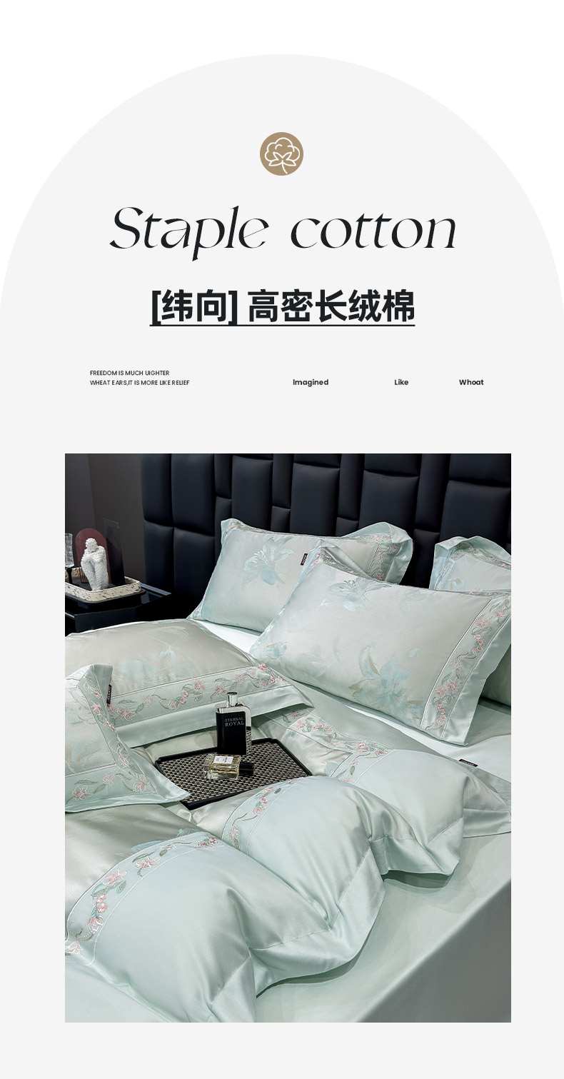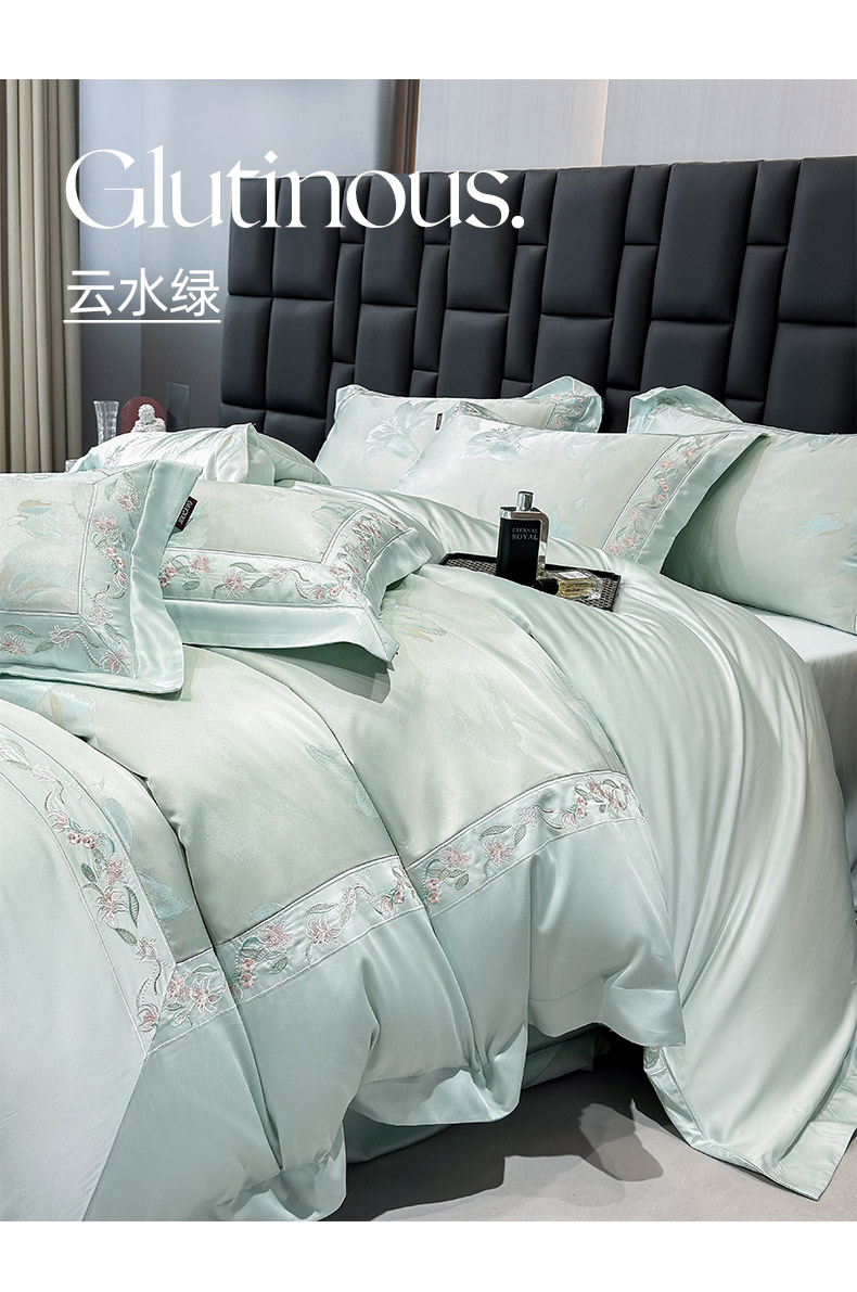 2025新款高端A类天丝棉提花四件套真丝轻奢刺绣丝滑裸睡长绒棉爆款床上用品-薇澜 薇澜-云水绿