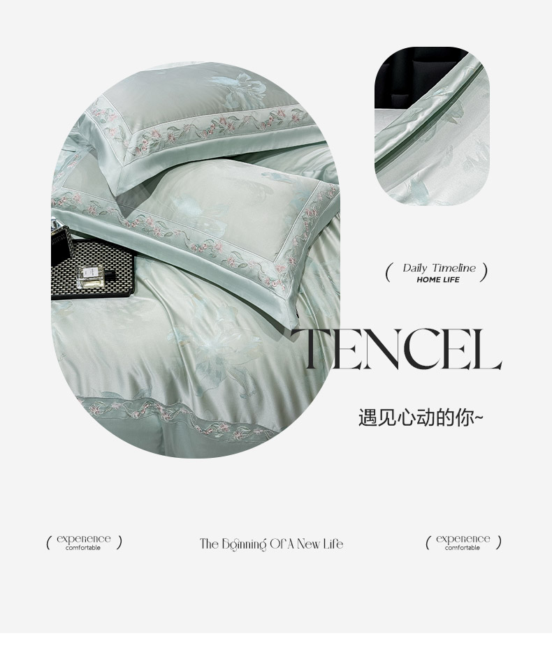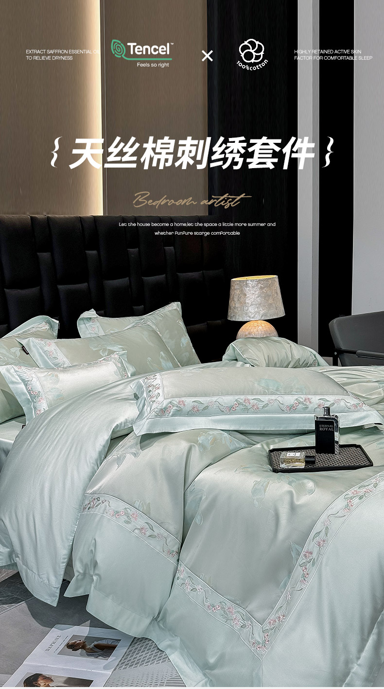 商品名称: 2025新款高端A类天丝棉提花四件套真丝轻奢刺绣丝滑裸睡长绒棉爆款床上用品-薇澜 薇澜-云水绿