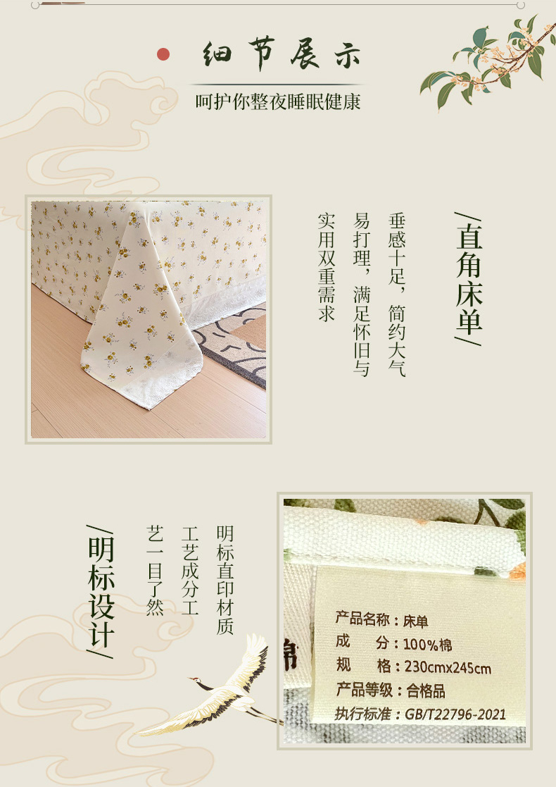 (总)春皖家纺 2026新款A类全棉有氧双层纱印花四件套单品系列-单床单,桂语兰庭,暮春,雾染玫瑰,晴丝一缕,青茵,花町,旧梦朝花,花织,雾色里德,雾棕