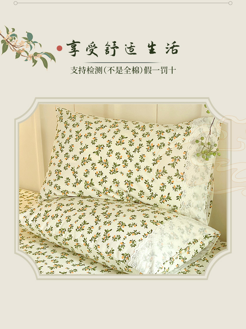 商品名称:(总)春皖家纺 2025春夏新款老粗布花边款单枕套 枕套单件