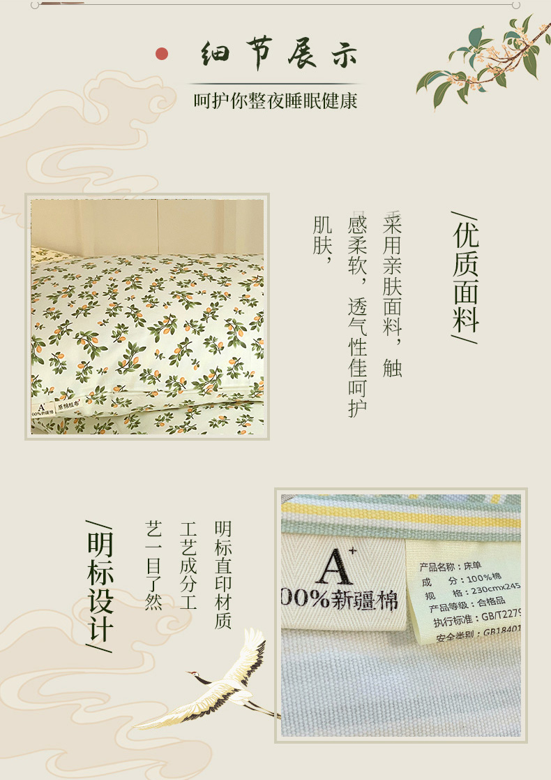 (总)春皖家纺 2026新款A类全棉有氧双层纱印花四件套单品系列-单床单,桂语兰庭,暮春,雾染玫瑰,晴丝一缕,青茵,花町,旧梦朝花,花织,雾色里德,雾棕