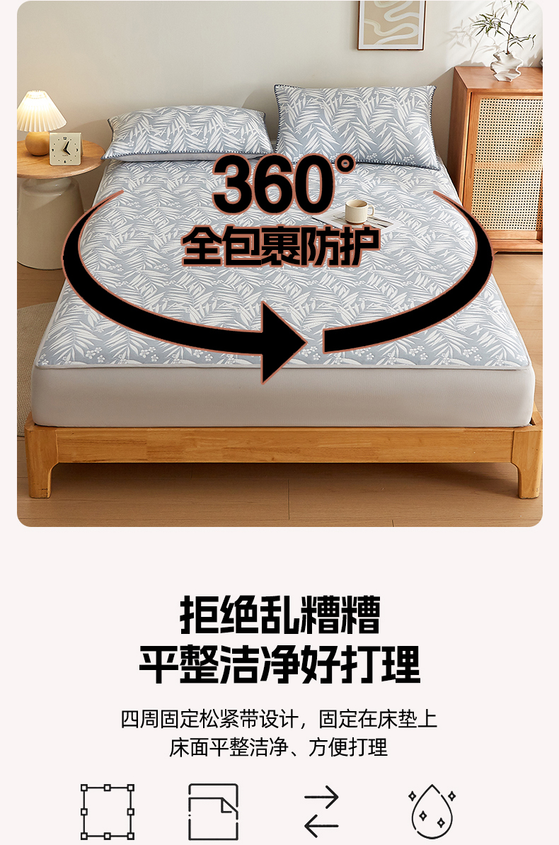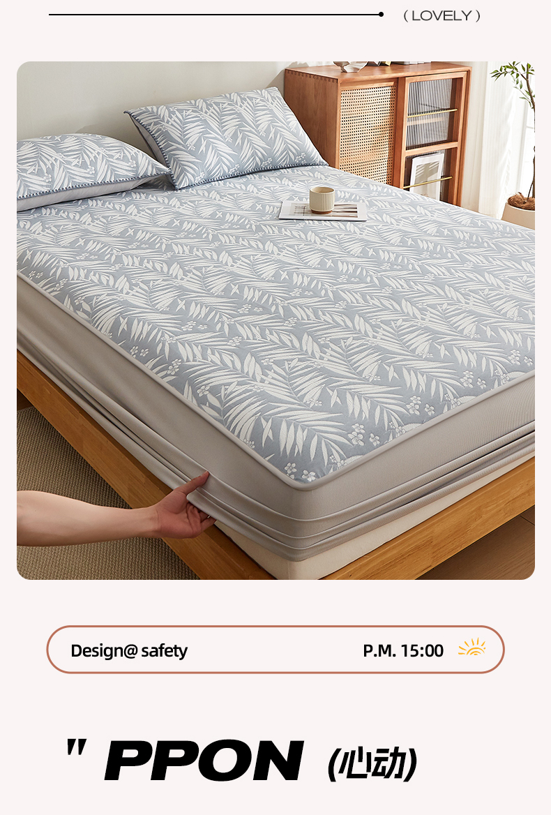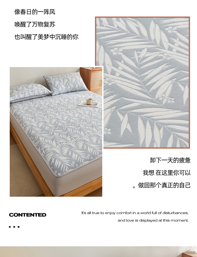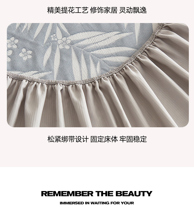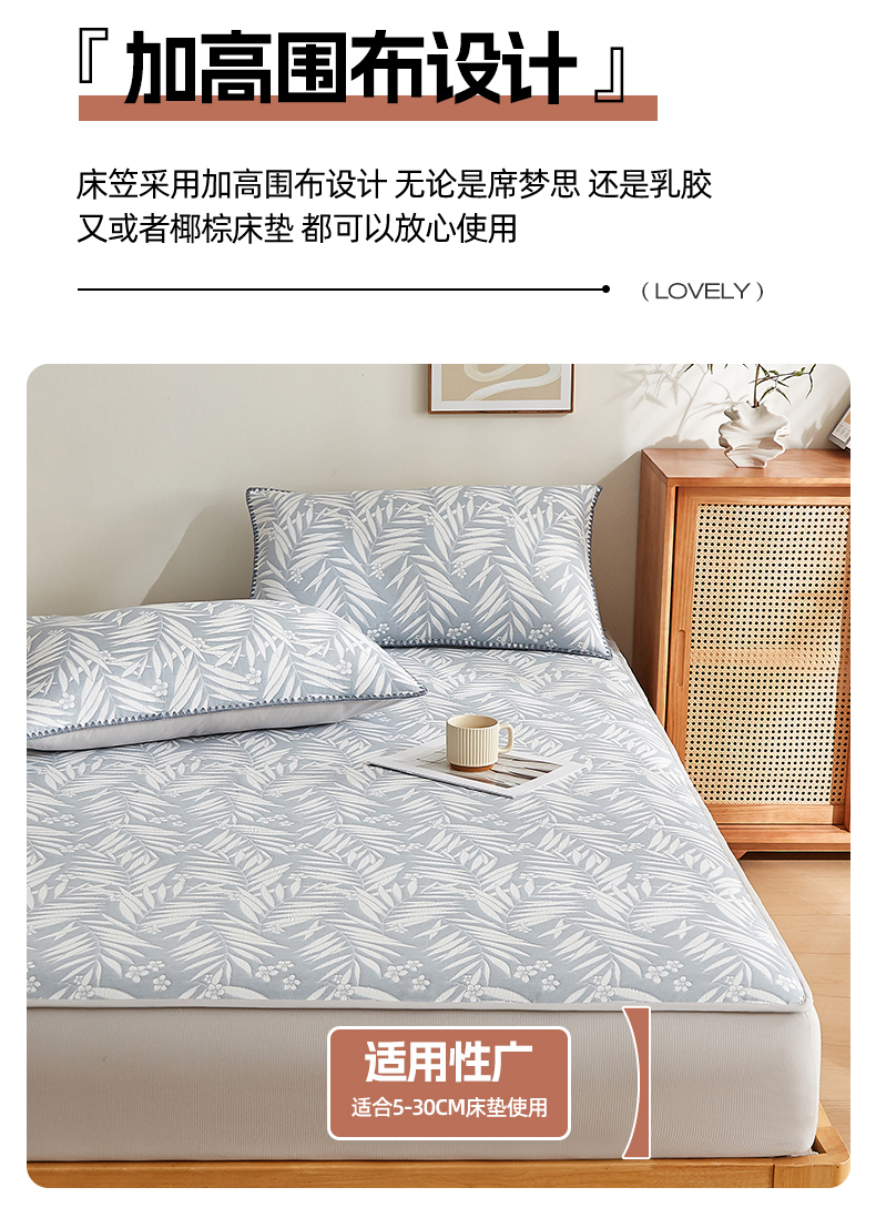 梦镜家纺 2025新款A类针织双层纱床笠 细叶-浅蓝灰