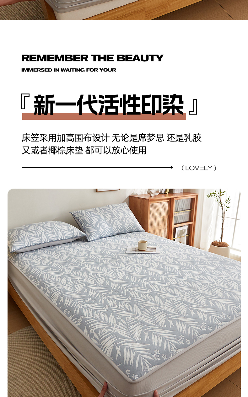 (总)梦镜家纺 2025新款A类云感水洗棉印花床褥(含买家秀),拉布大王,奶油块块,银河,海盐汤圆,生日宴会-蓝,少女象