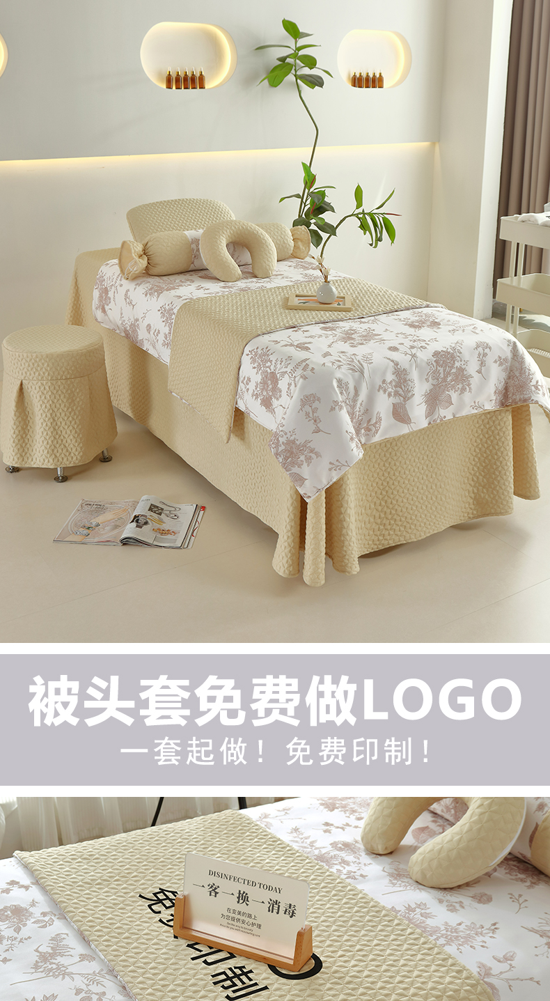 琪宝阁 2025新款美容床罩四件套美容院专用套件-小风车系列 小风车-卡其