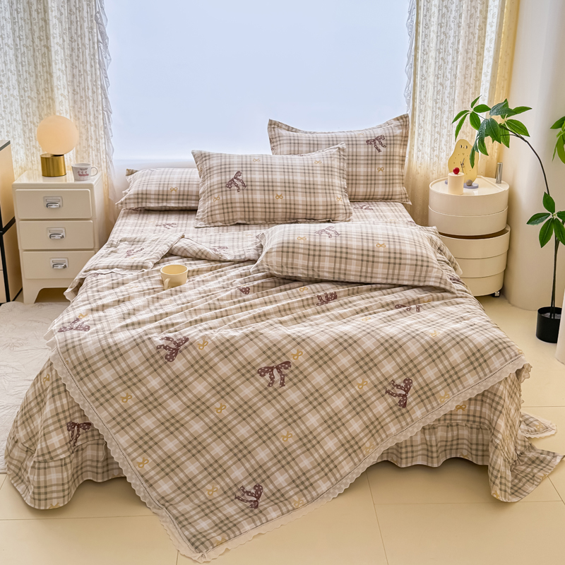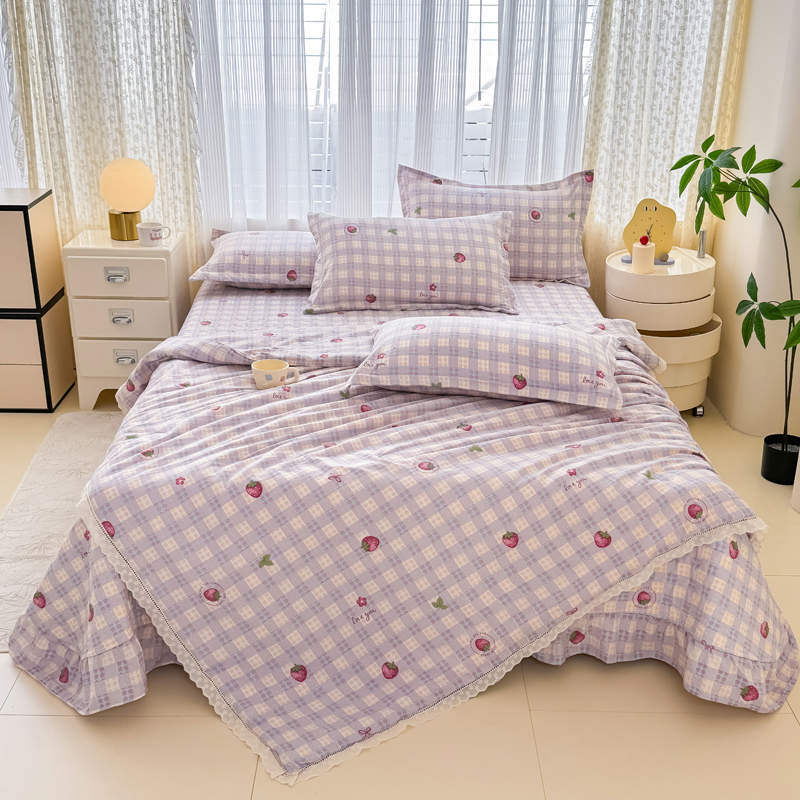 梦可莱家居 2025夏季新款木棉夏被镂空花边床盖四件套 玫瑰卡