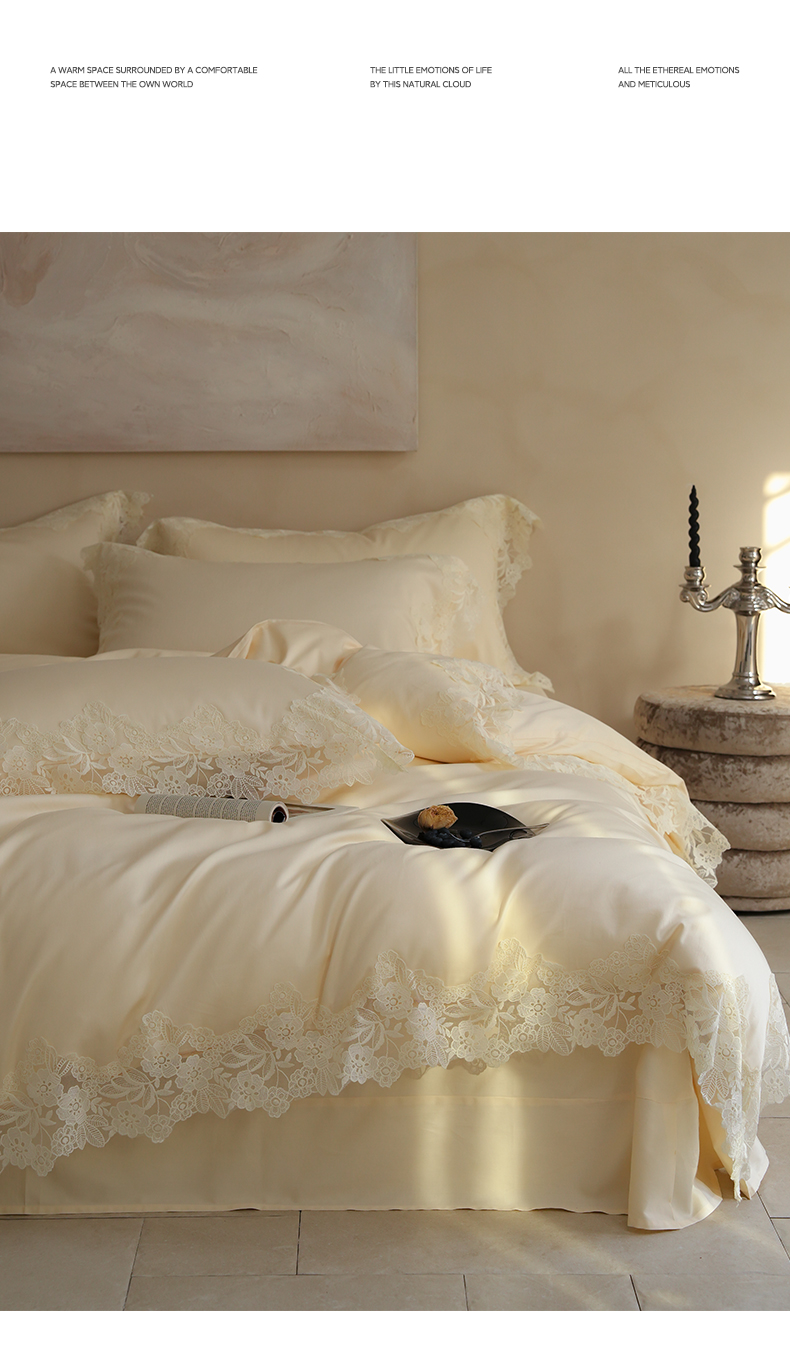 商品名称:秀色家纺 2025新款法式田园轻奢蕾丝荷叶边被套贡缎全棉四件套纯棉公主风高级床品(轻奢风) 白云山茶-茱萸粉