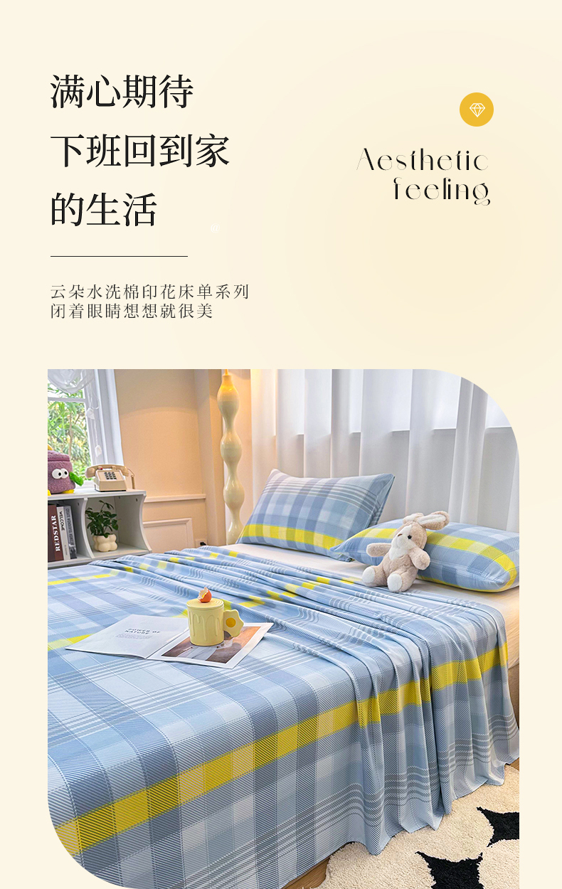 • 91家纺网 家纺一手货源 找家纺 雨彤家纺 2025新款A类母婴级软糯糯云朵水洗棉床单 安格尔-蓝