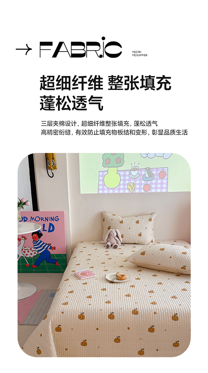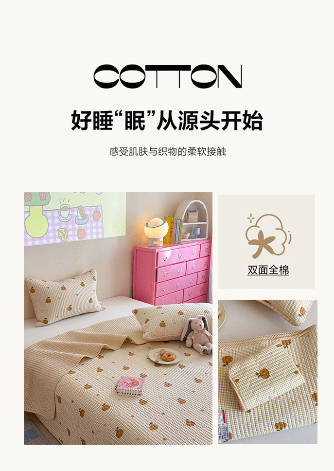 • 91家纺网 家纺一手货源 找家纺 琳可家居 2025新款13070印花款双面全棉全棉床盖 南瓜派