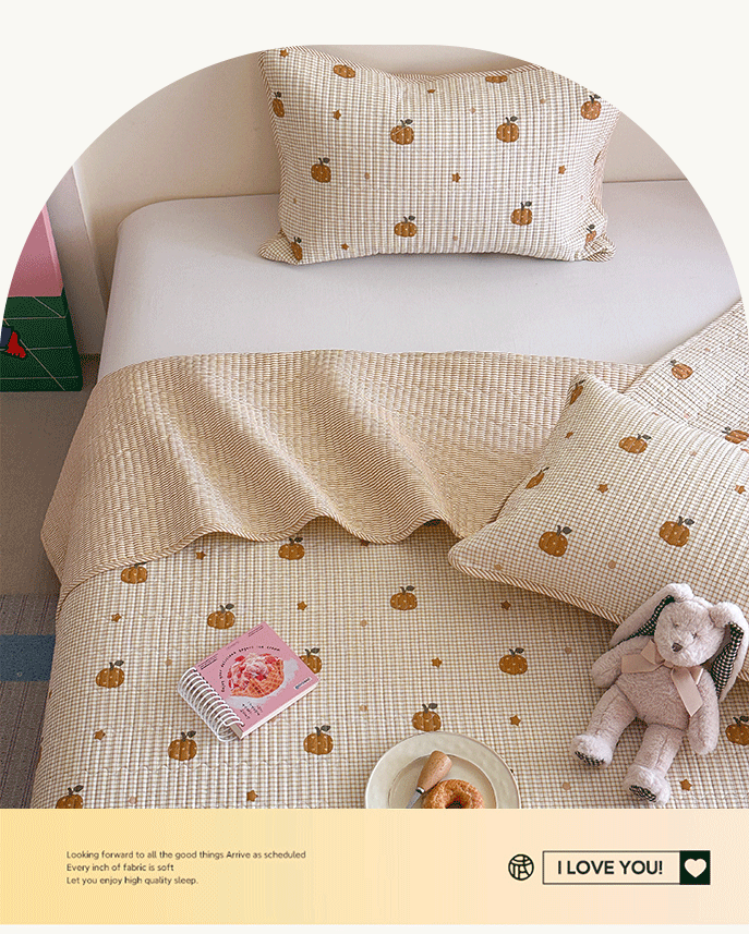 琳可家居 2025新款13070印花款双面全棉全棉床盖 南瓜派
