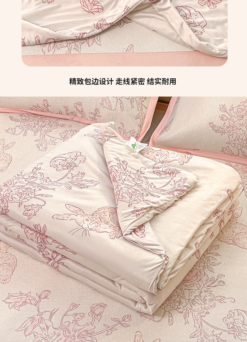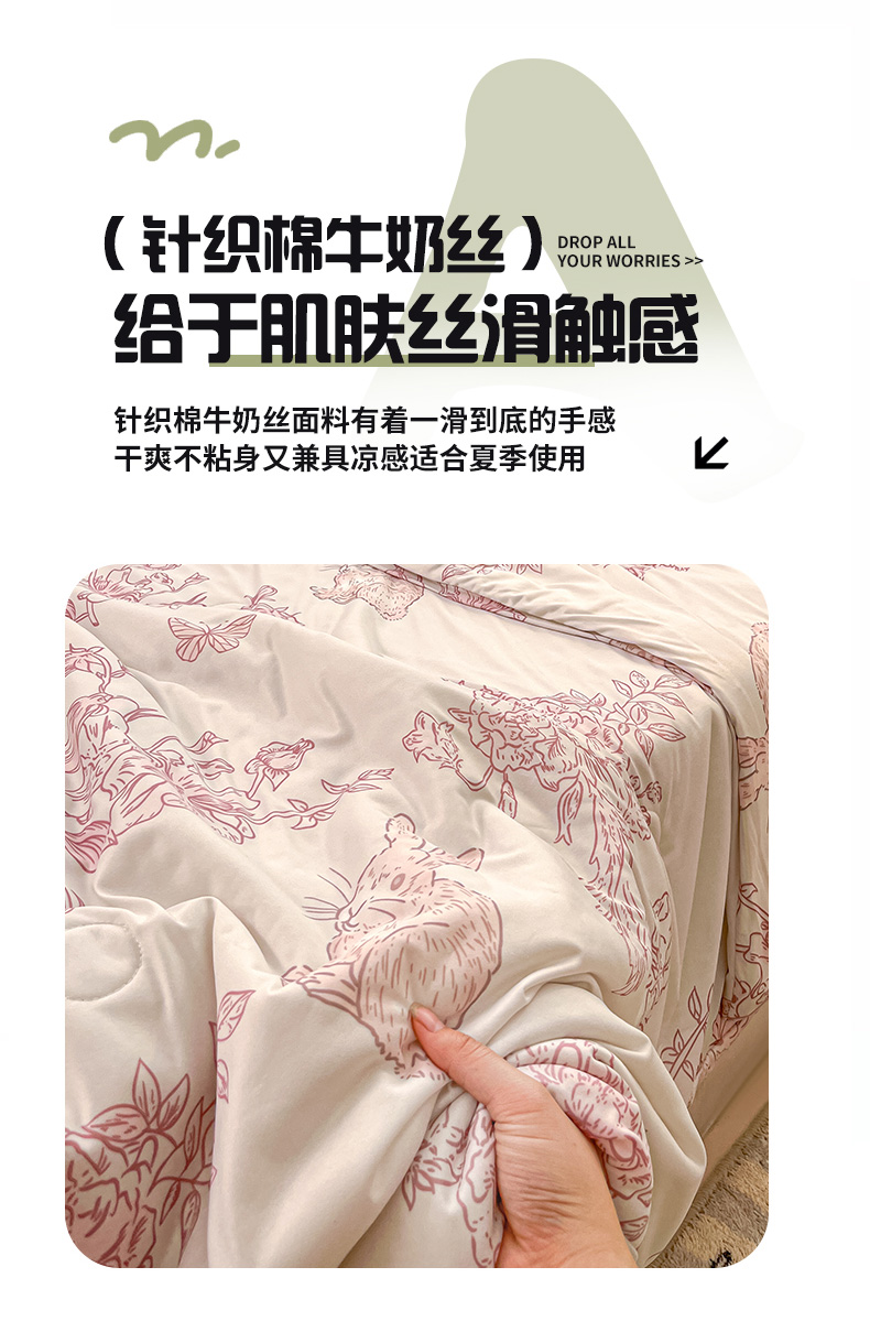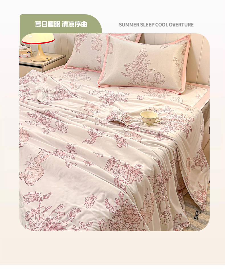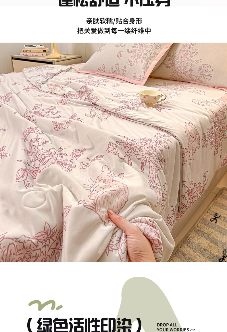 当前位置: 91家纺网 > 商品网购 > 床品套件 > 四件套 > 夏被四件套 > 安哆啦家纺 2025新款A类印花冰藤凉席针织棉牛奶丝夏被夏凉被空调被四件套 免小姐的花