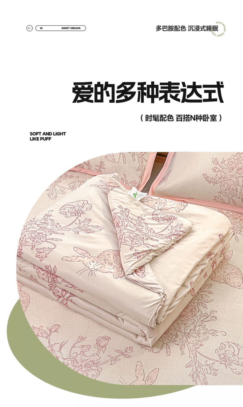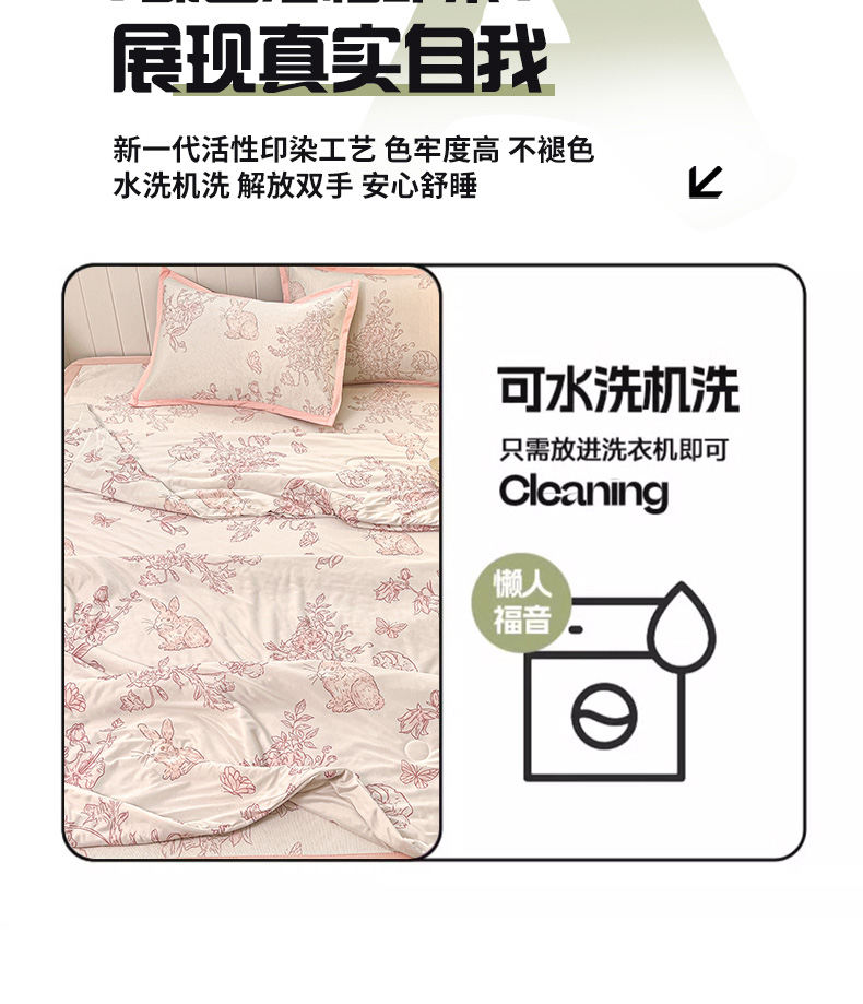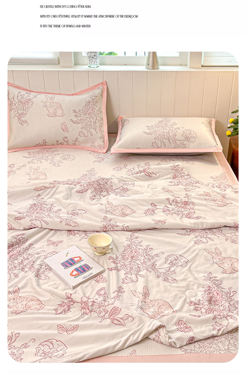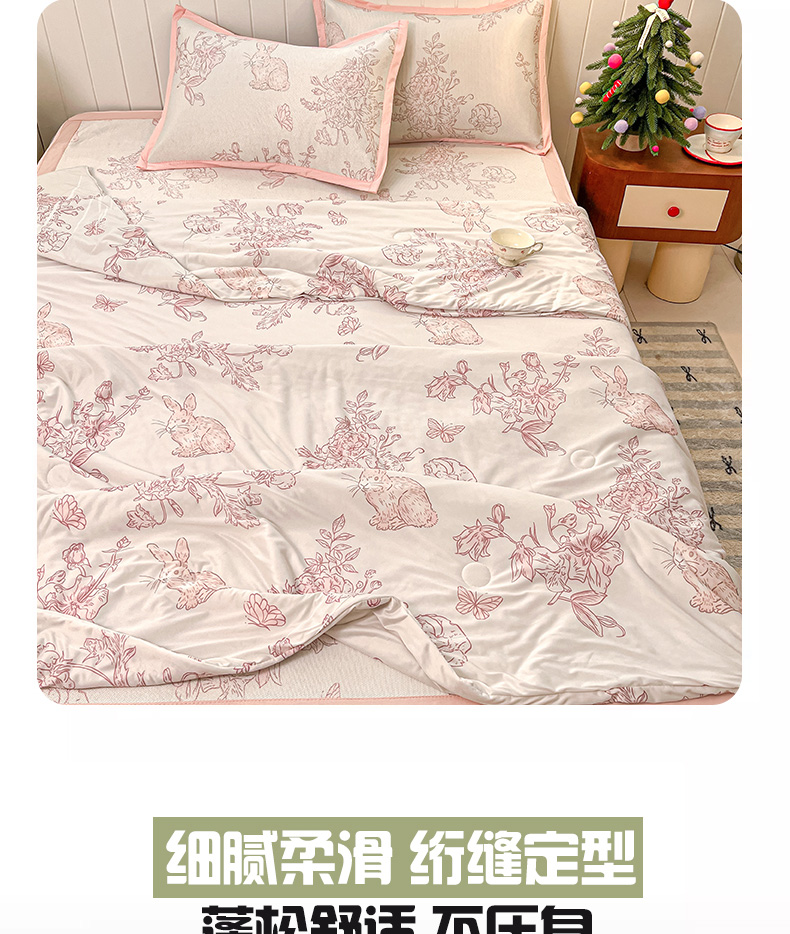 当前位置: 91家纺网 > 商品网购 > 床品套件 > 四件套 > 夏被四件套 > 安哆啦家纺 2025新款A类印花冰藤凉席针织棉牛奶丝夏被夏凉被空调被四件套 免小姐的花