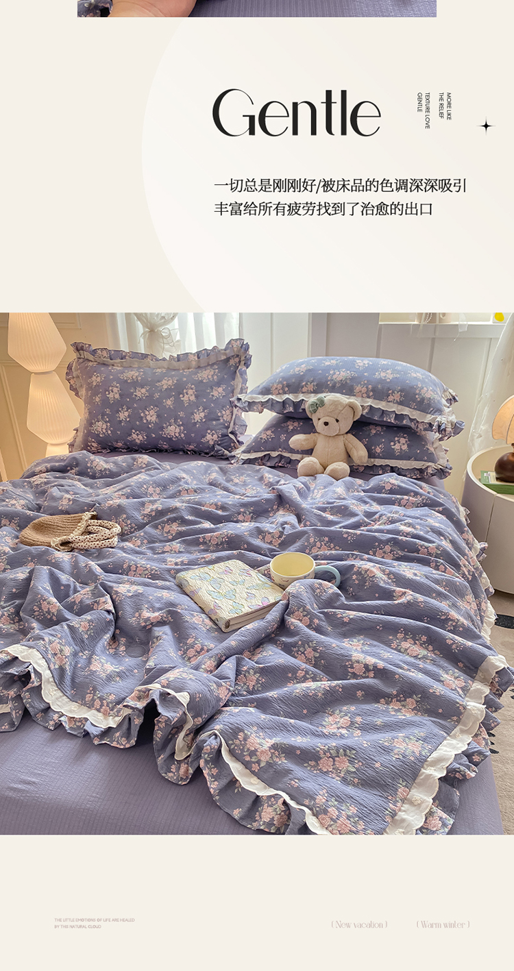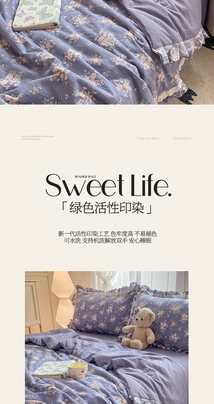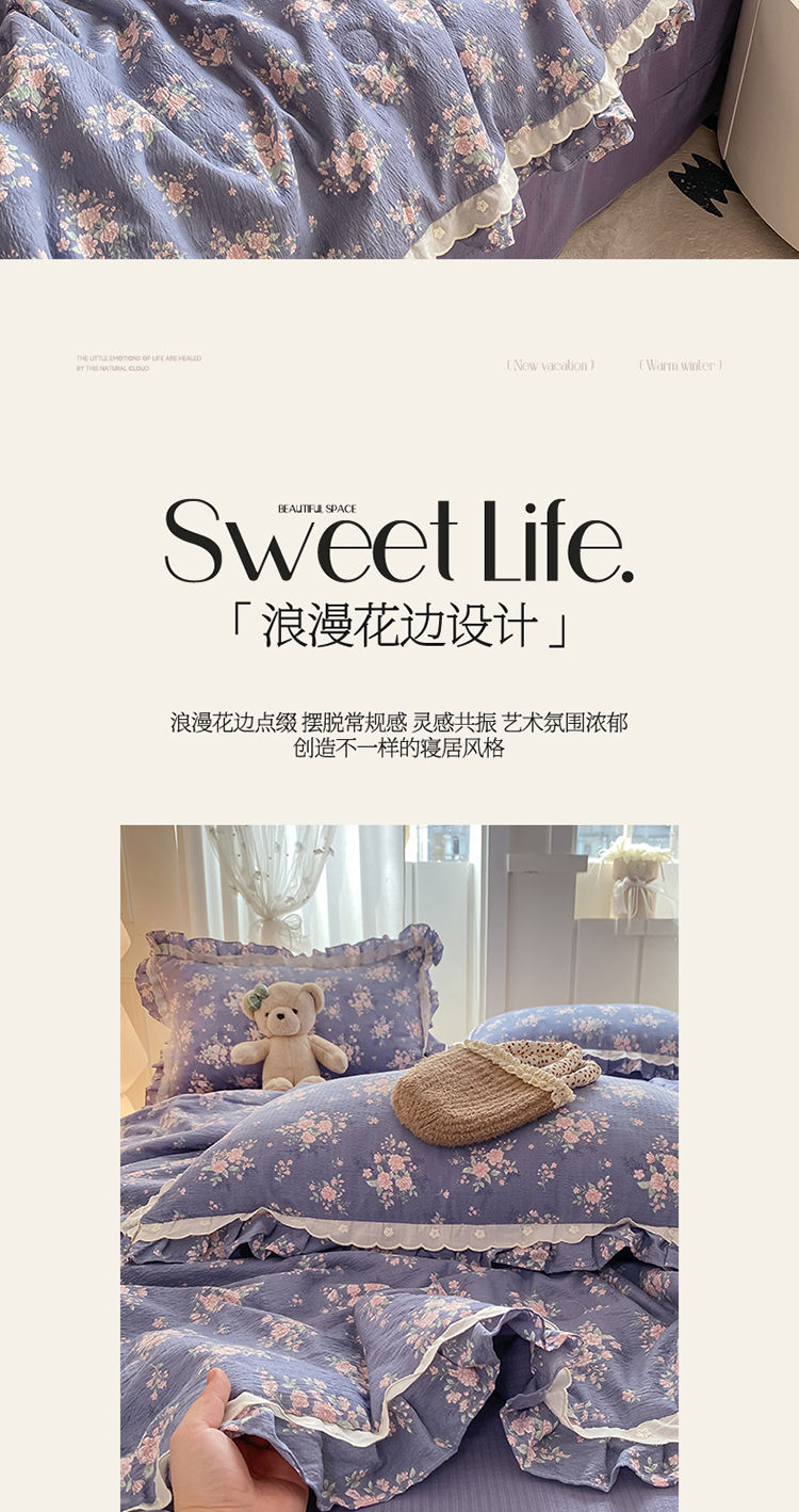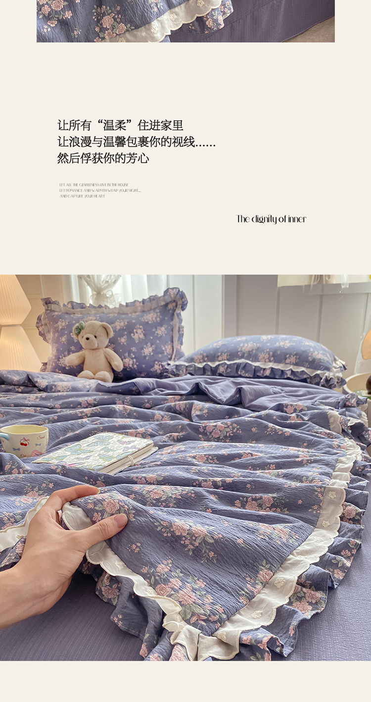 (总)大麦家纺2025新款年新款亲肤花边款床盖四件套 ,甜心小姐-梵星蓝,甜心小姐-落日橘,甜心小姐-奶昔白,甜心小姐-青提绿,甜心小姐-香槟玉,甜心小姐-香芋紫,甜心小姐-樱花粉