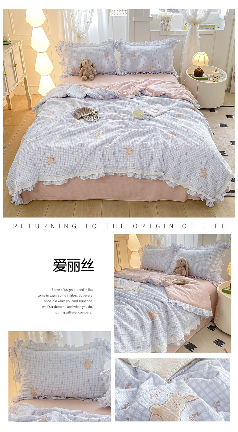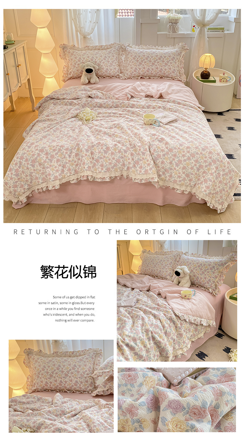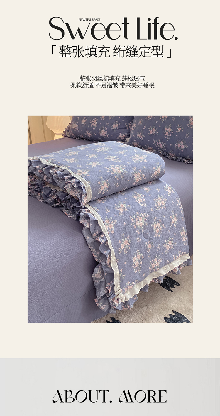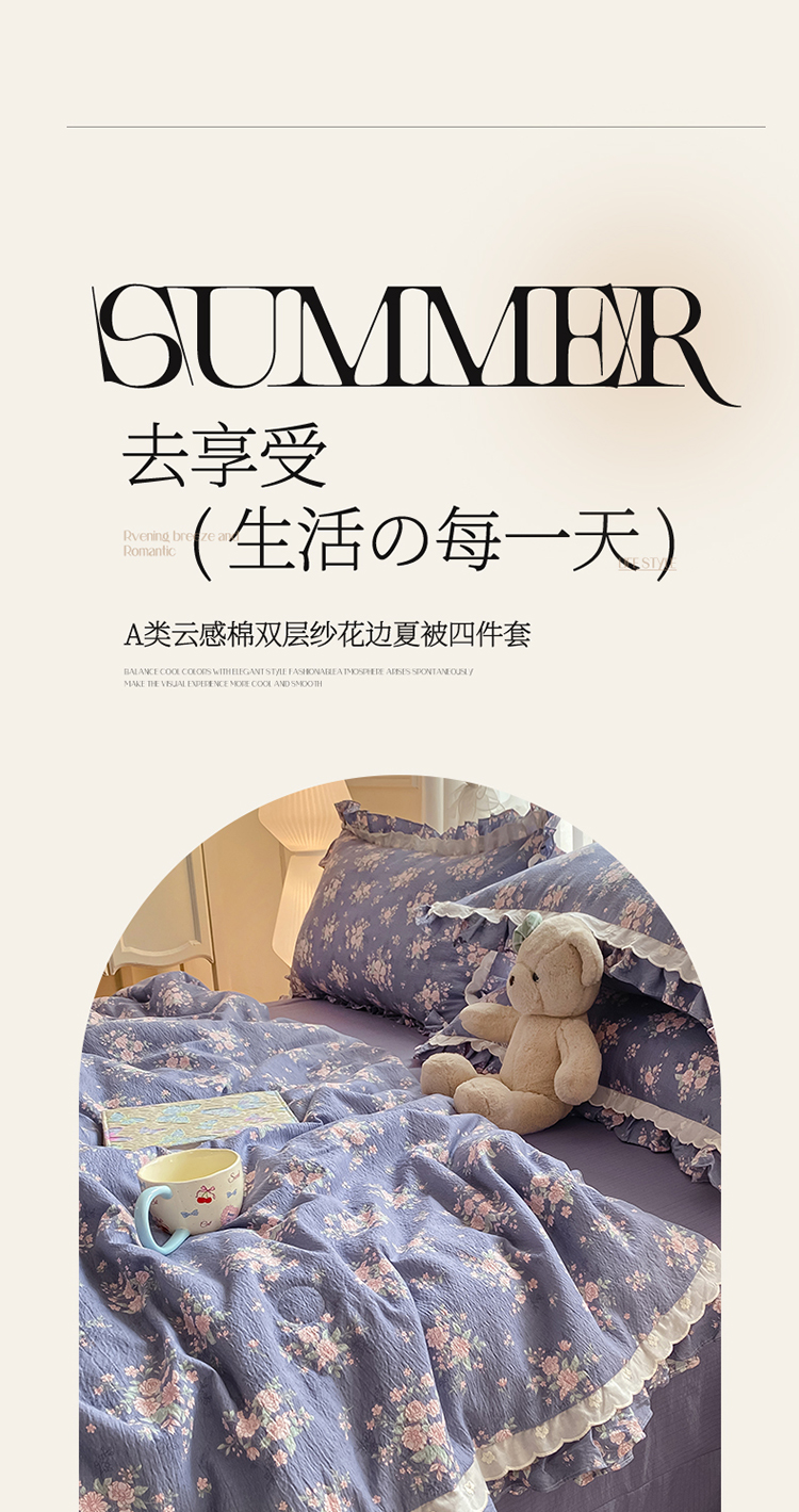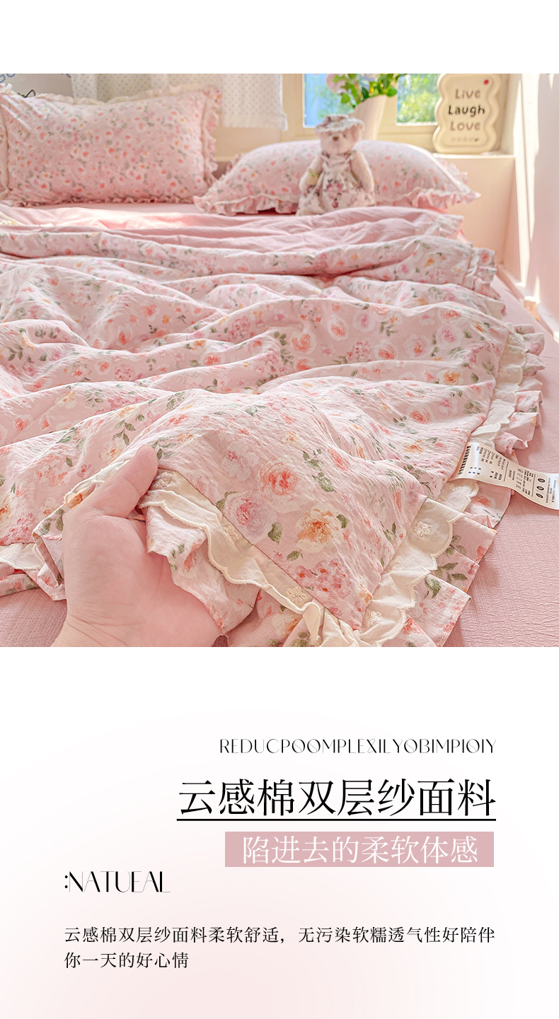 (总)大麦家纺 2025新款云感双层纱花边夏被四件套