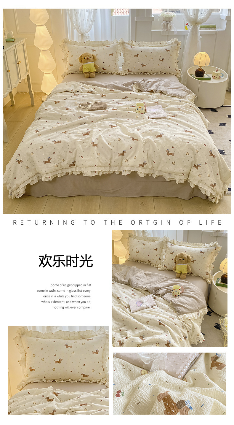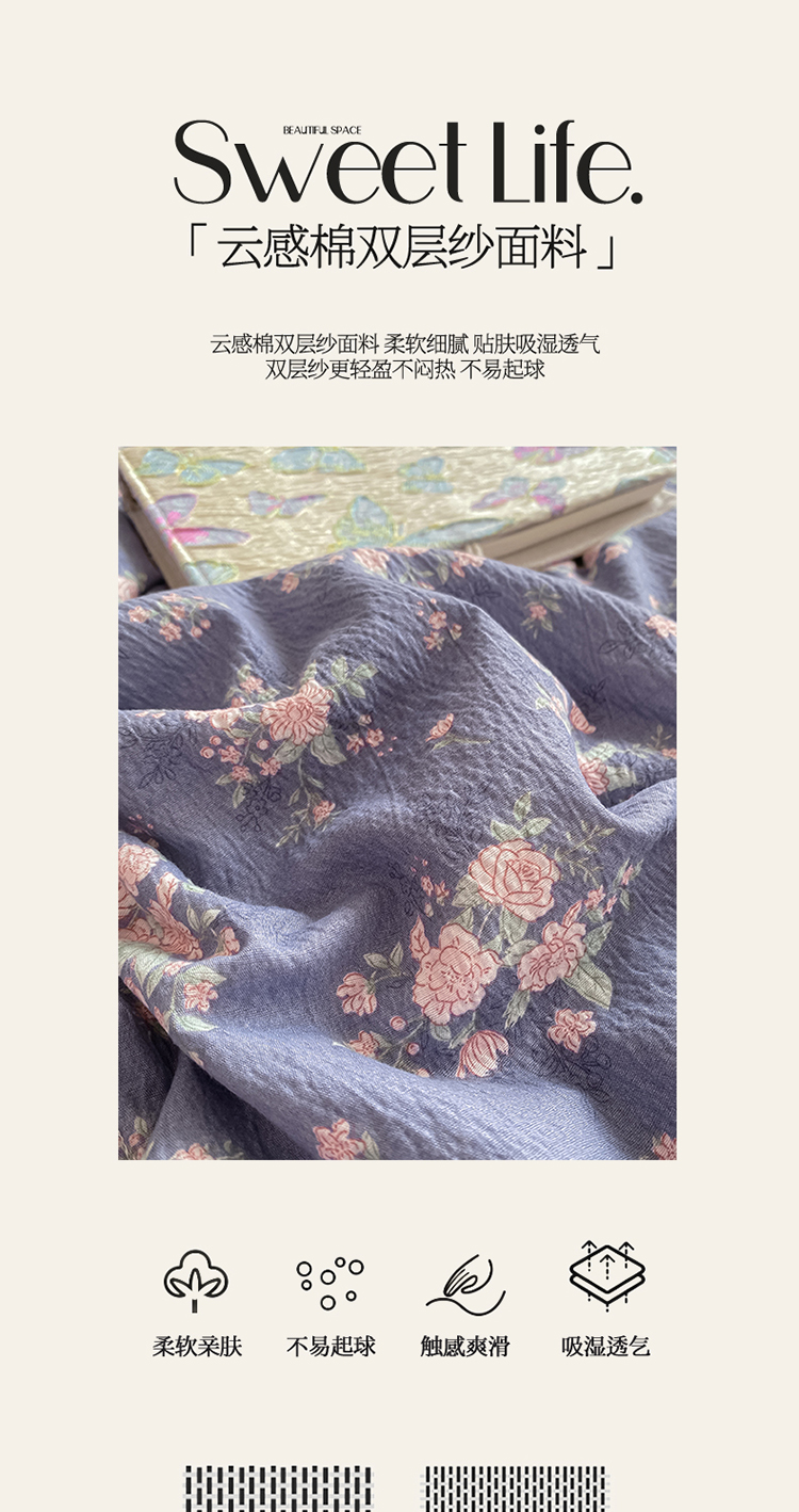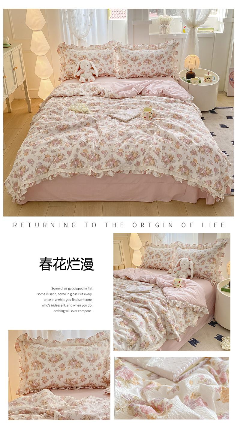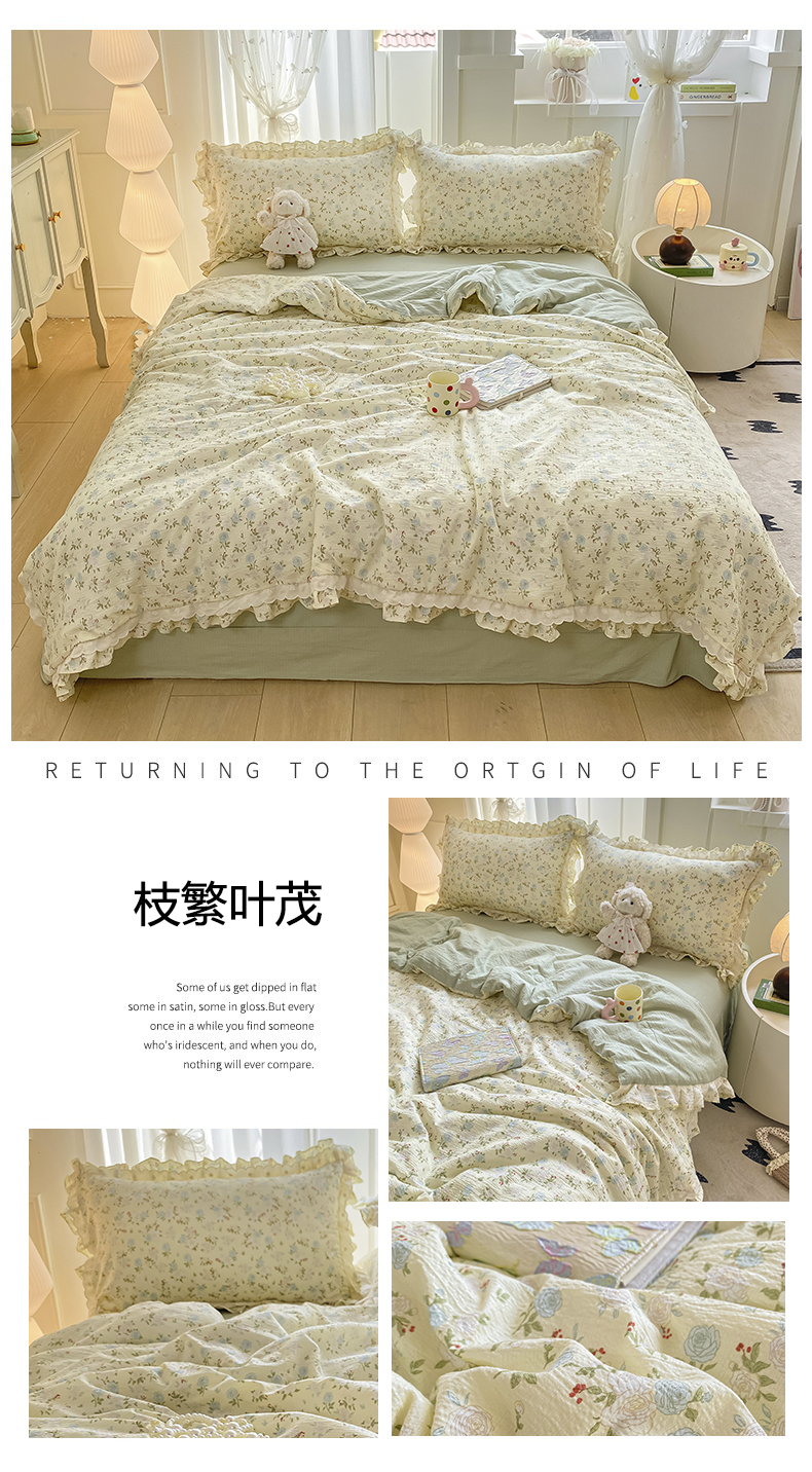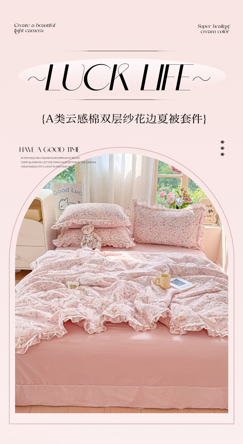 (总)大麦家纺 2025新款云感双层纱花边夏被四件套