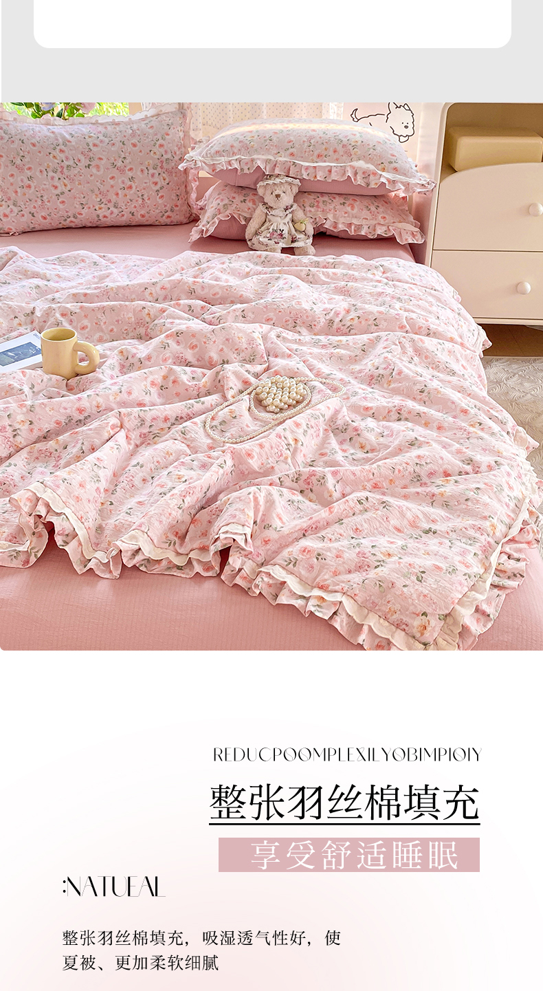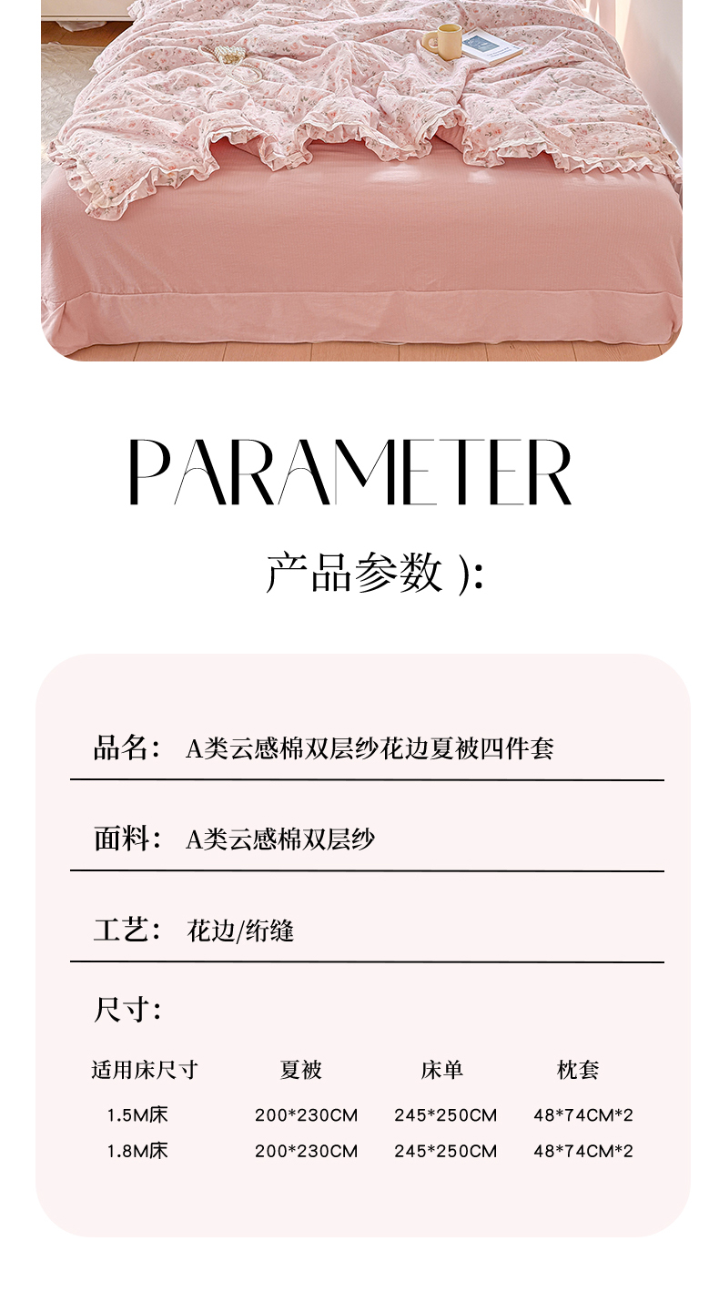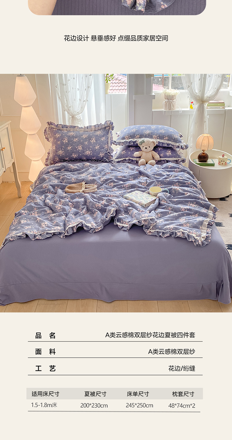 商品名称:(总)大麦家纺 2025新款云感双层纱花边夏被四件套
