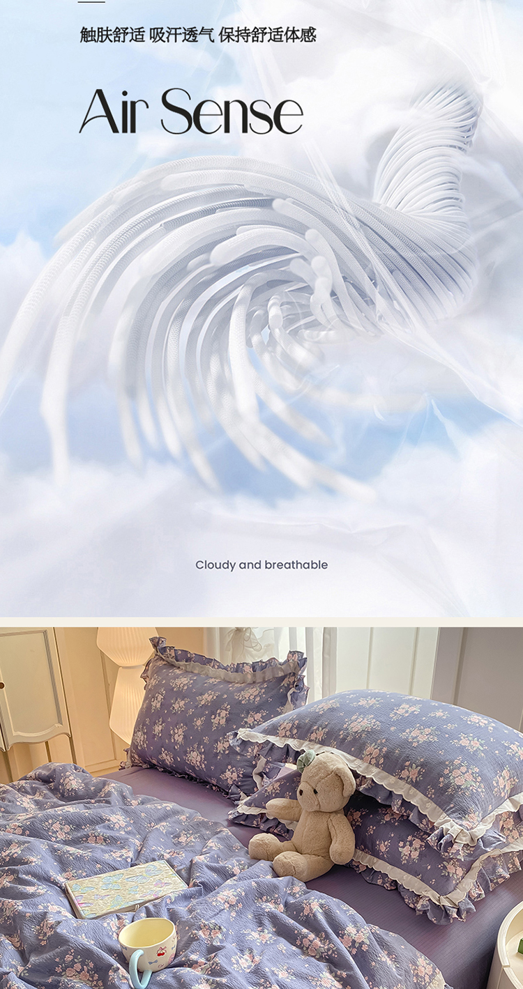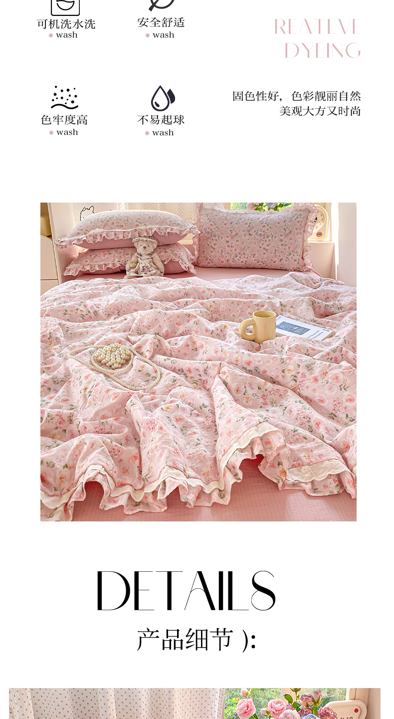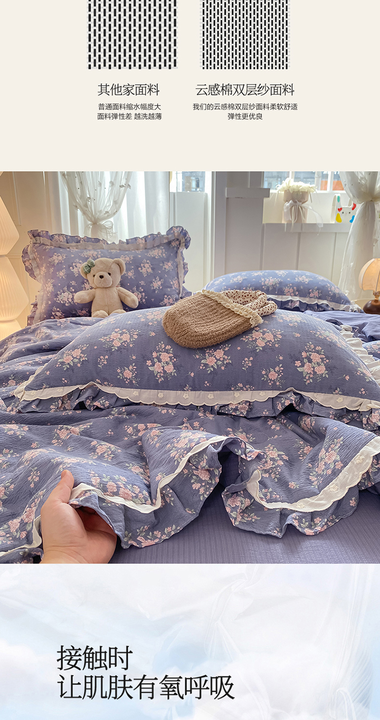 商品名称:(总)大麦家纺 2025新款云感双层纱花边夏被四件套
