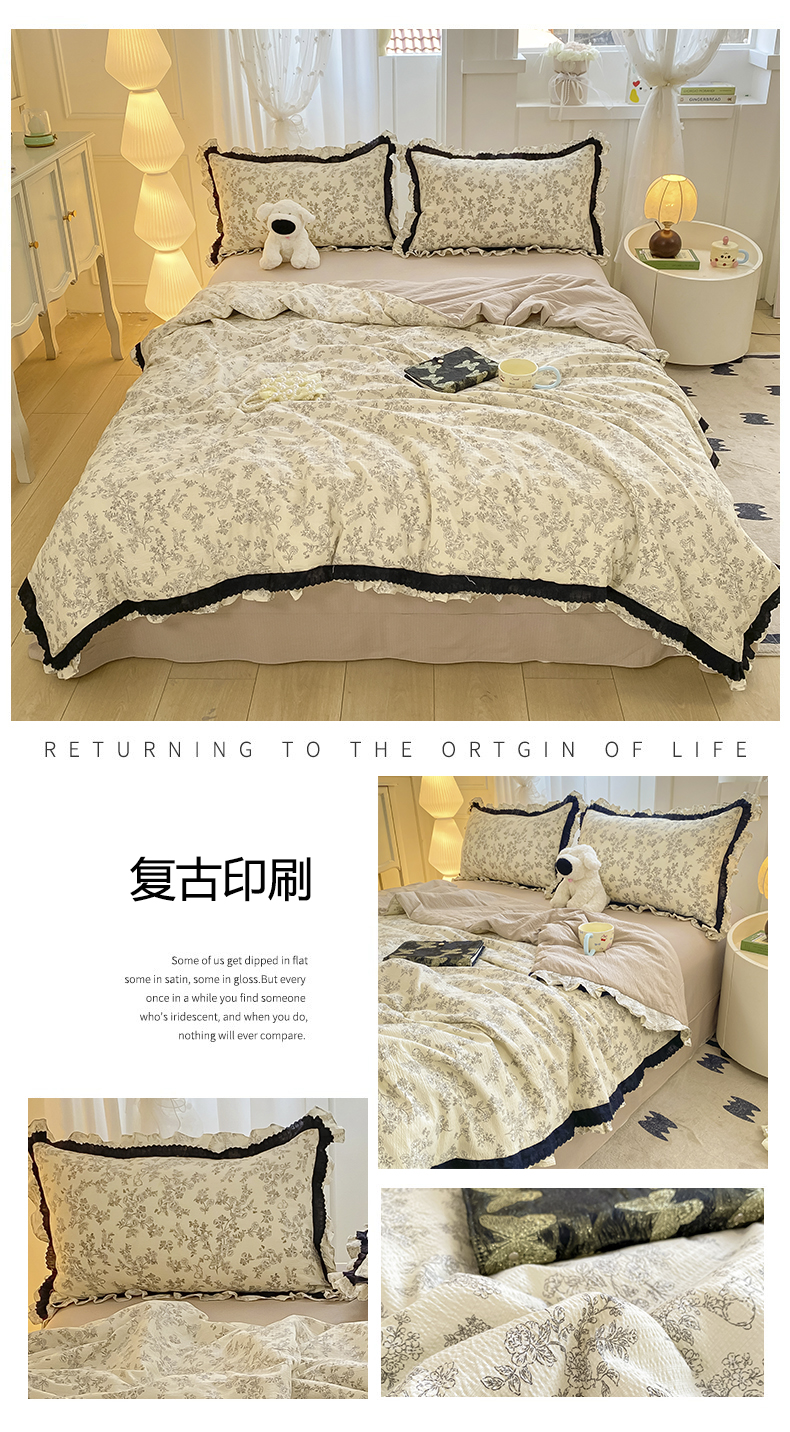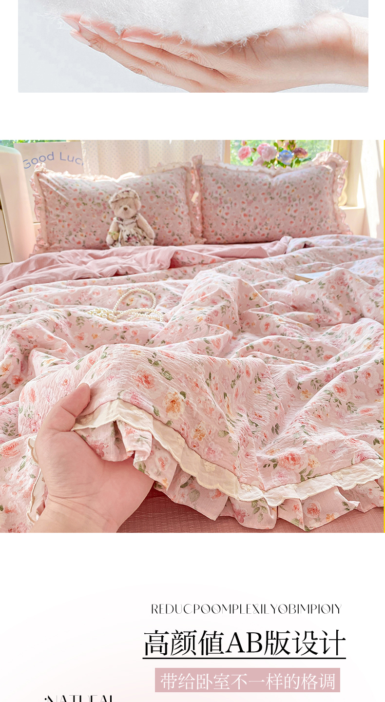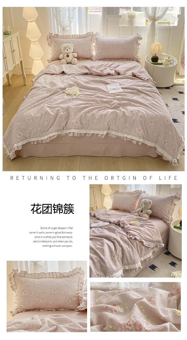(总)大麦家纺 2025新款水洗亚麻花边四件套,粉黛佳人,风木槿咖,浮生花语,海棠花溪,花颜,锦瑟,满园花开,山花浪漫,颂青时,香榭花园,玉茗