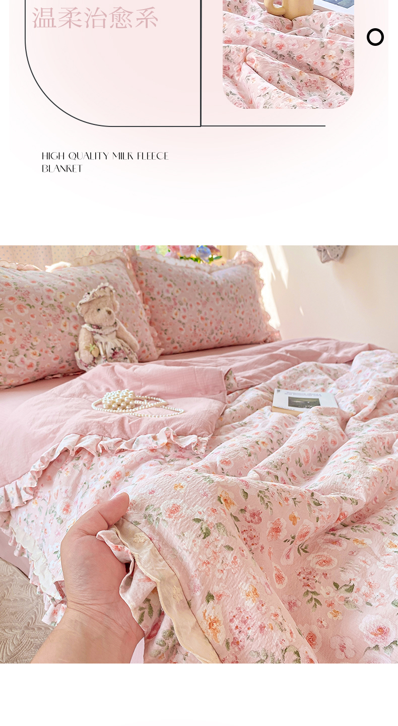 (总)大麦家纺 25年新款高克重兔毛牛奶绒床盖四件套,半暖时光,浮生若梦,花影织梦,流绪微梦,罗马假日,十里格桑,幽若花园