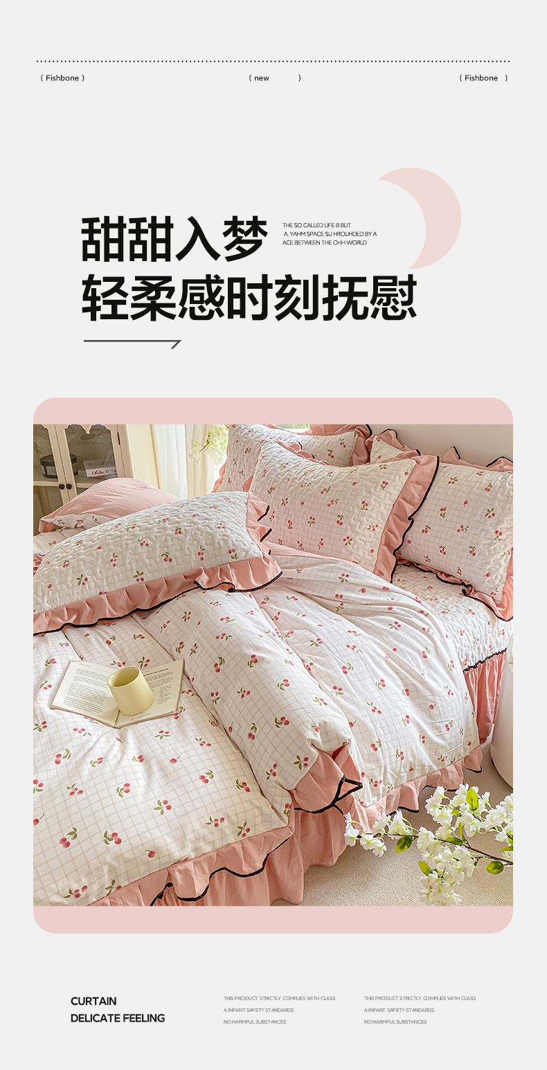 当前位置: 91家纺网 > 商品网购 > 床上用品 > 床盖 > 米柳2025新款水洗棉床盖四件套 樱桃甜心