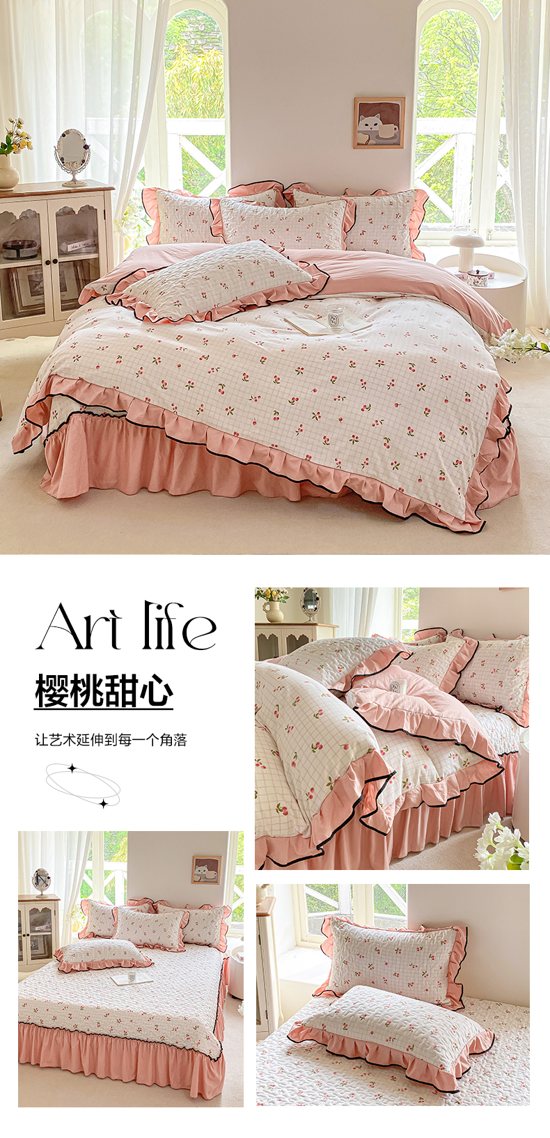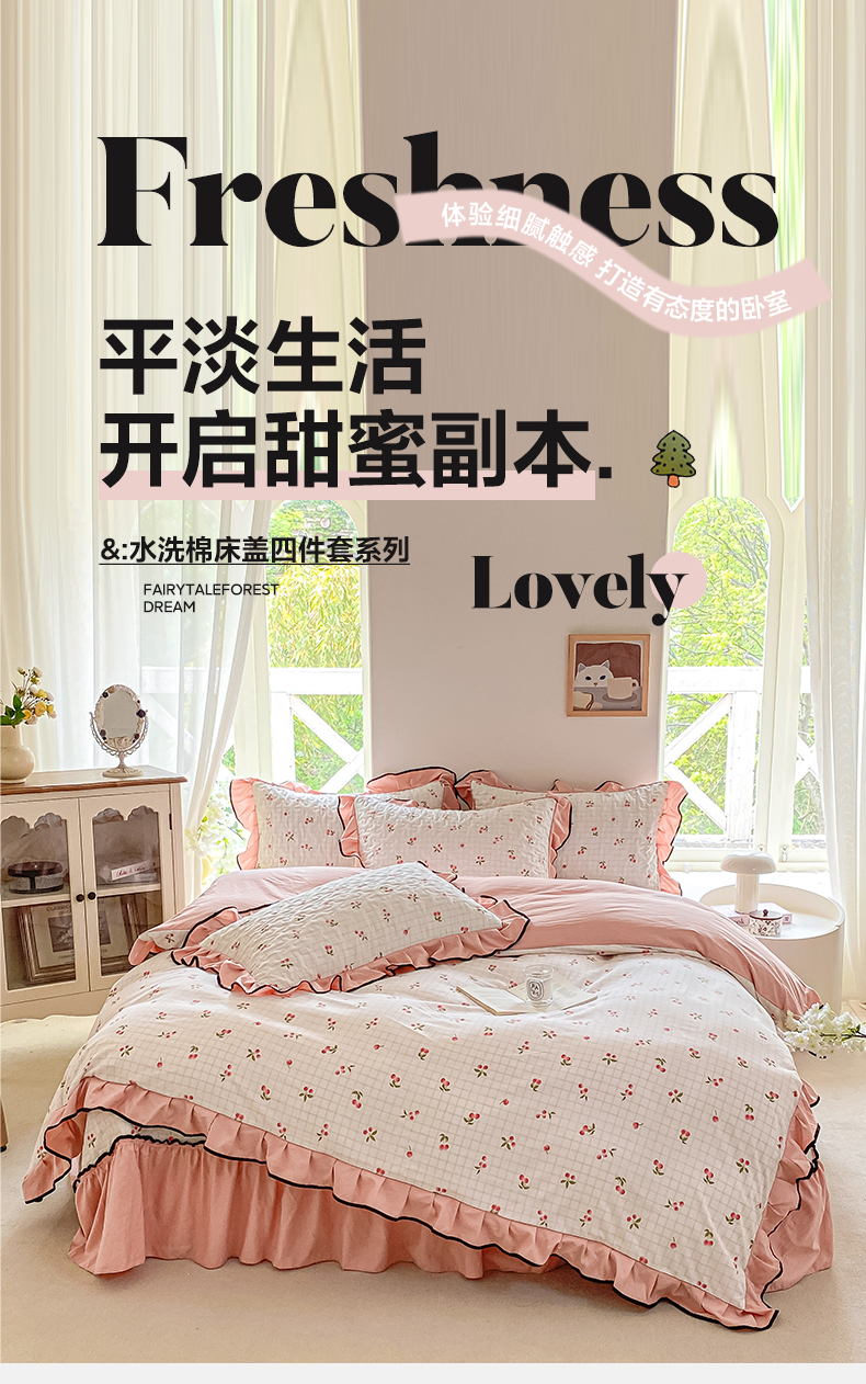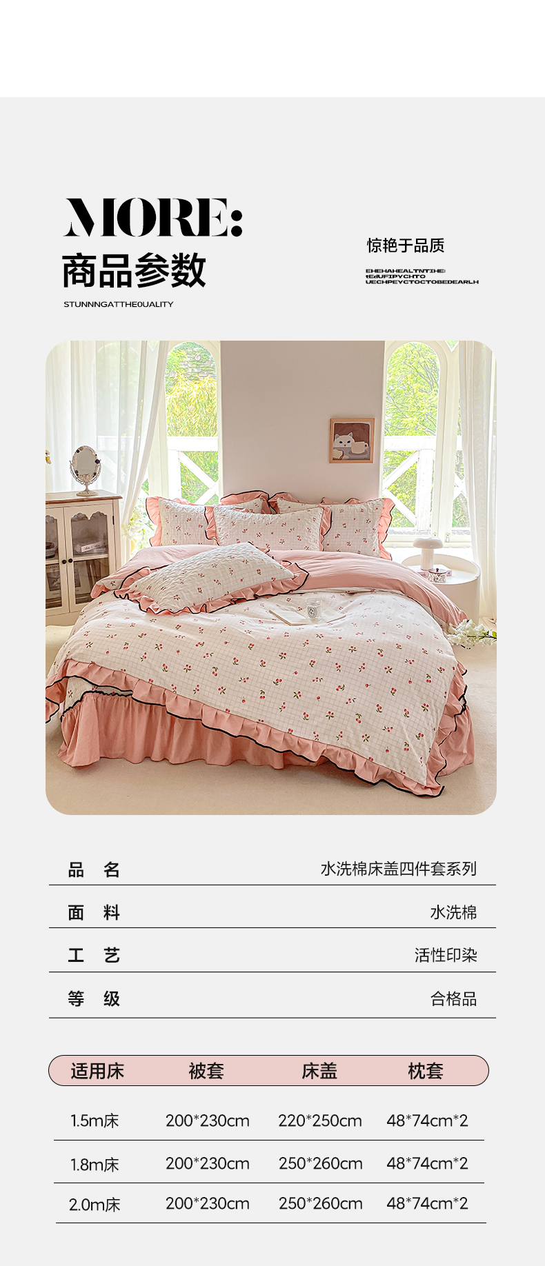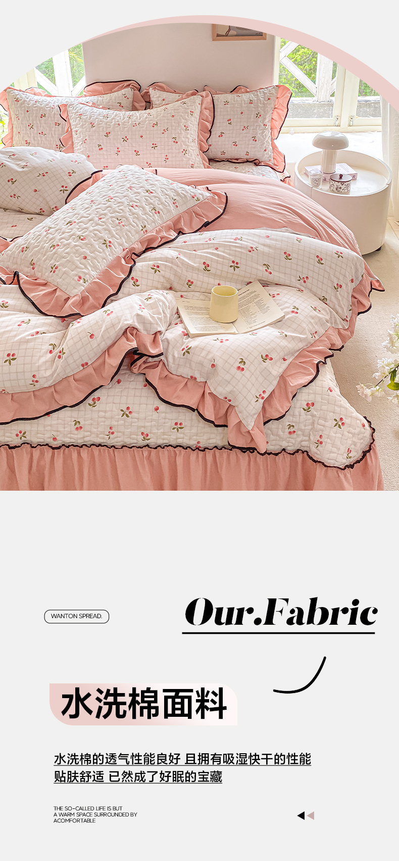 • 91家纺网 家纺一手货源 找家纺 米柳2025新款水洗棉床盖四件套 樱桃甜心
