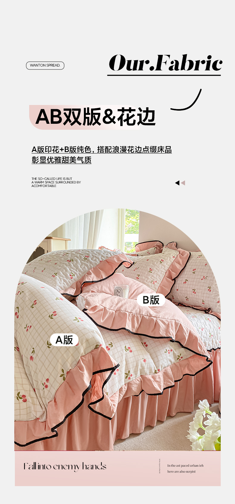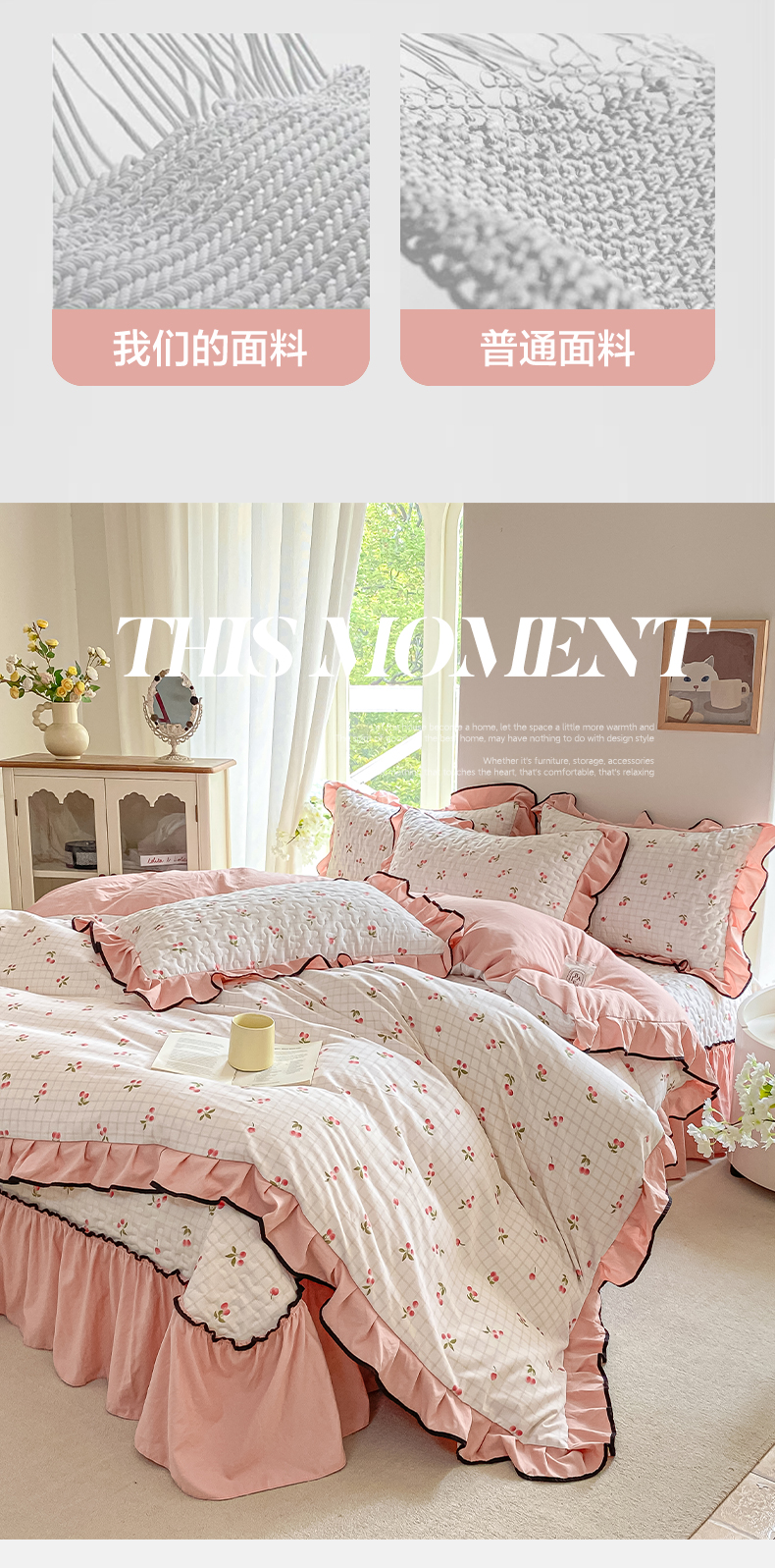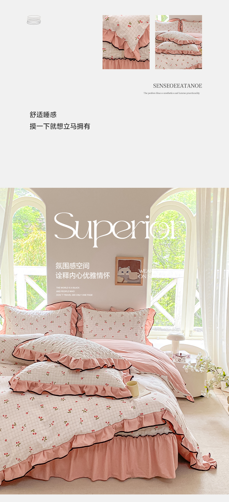 • 91家纺网 家纺一手货源 找家纺 米柳2025新款水洗棉床盖四件套 樱桃甜心