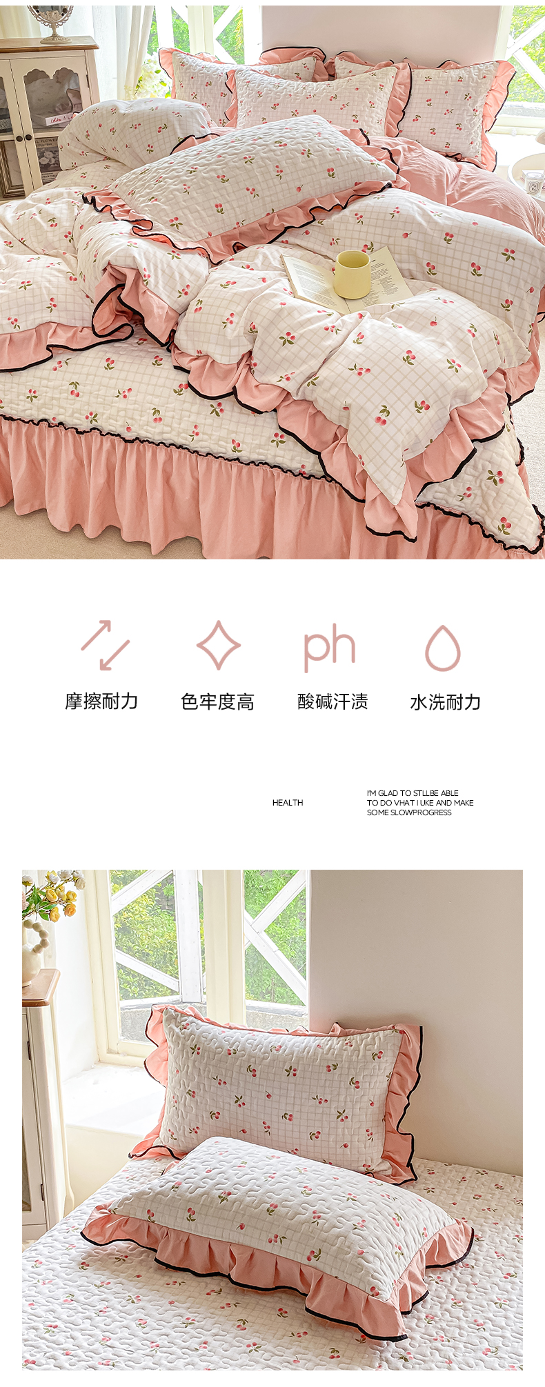 米柳2025新款水洗棉床盖四件套 樱桃甜心
