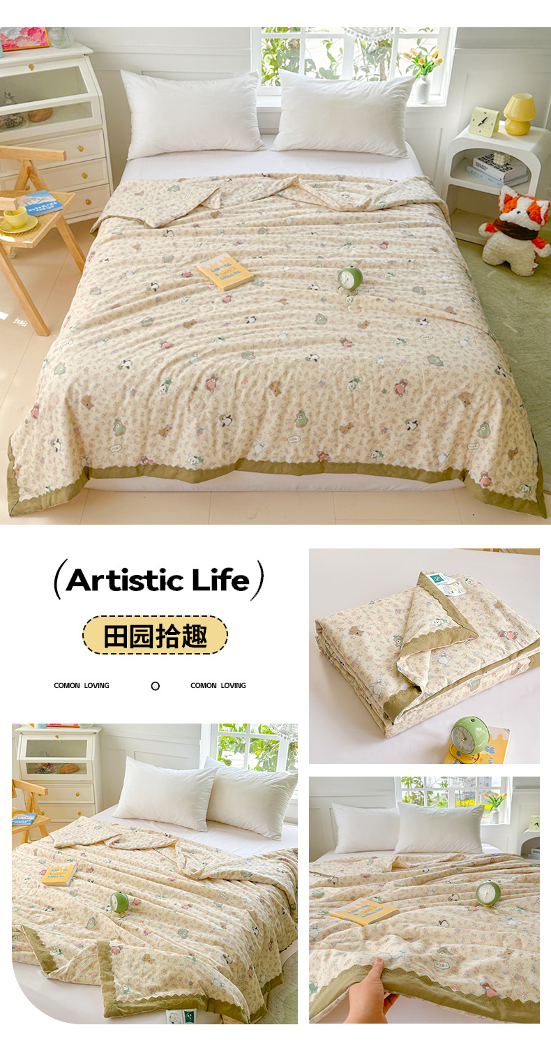 2025新款全棉60支单层纱花边夏被 田园拾趣