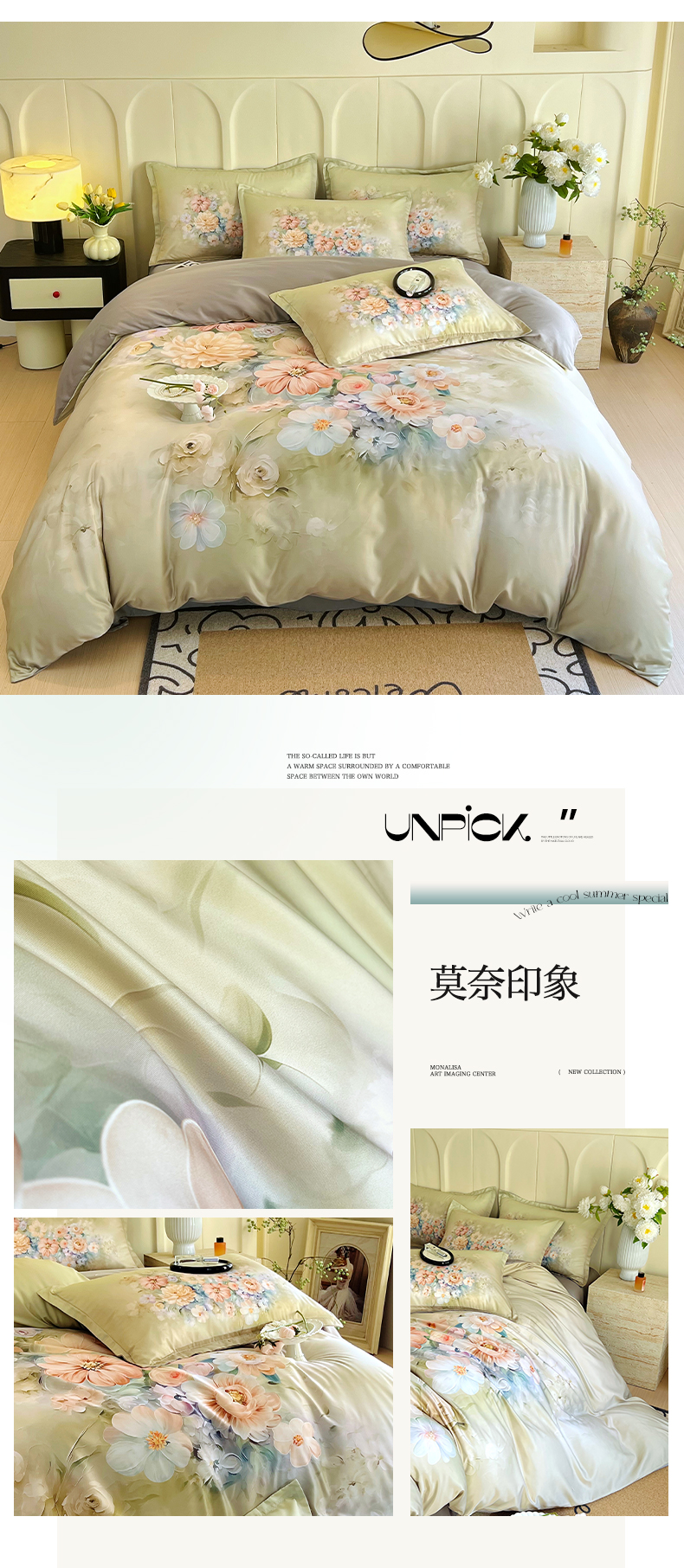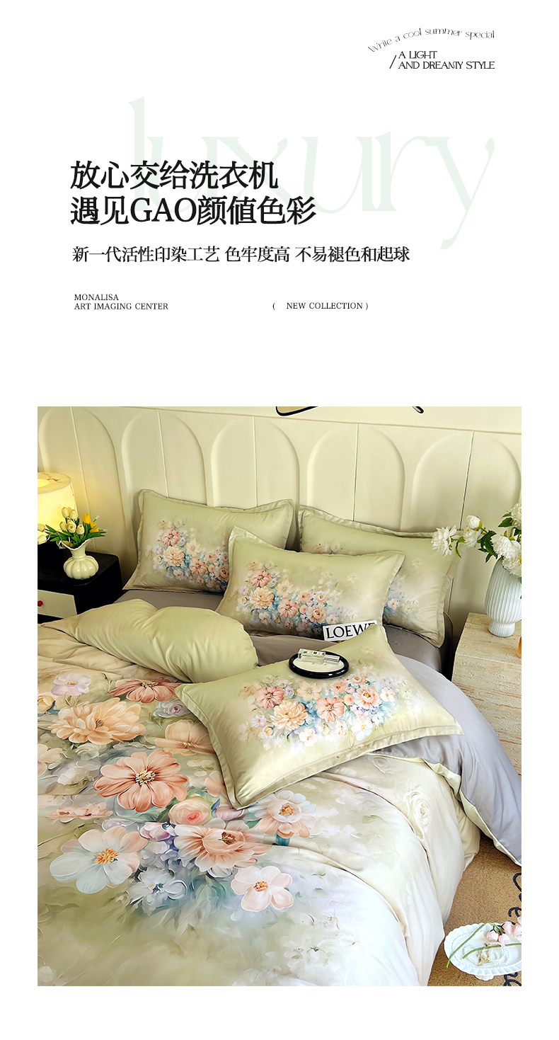 商品名称:大麦乐田 2025新款数码印花大版花卉四件套 莫奈印象