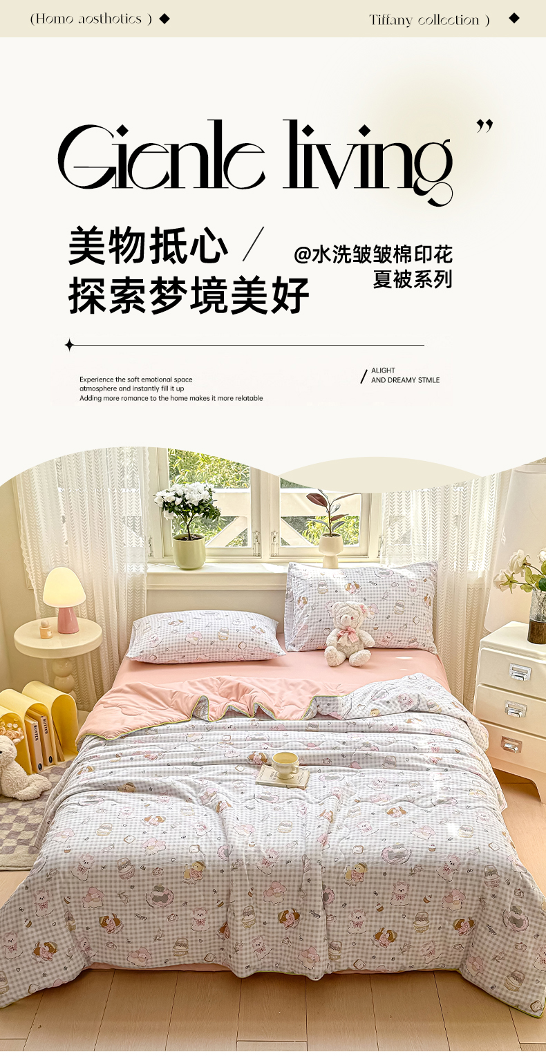 (总)丝芙妮家居(原乐视家纺) 2024新款A类色织水洗棉新疆棉花夏被,可颂咖,洛川棕,梦田-绿,暮落-绿,暮落-米黄,暮落-杏,暮落-粉