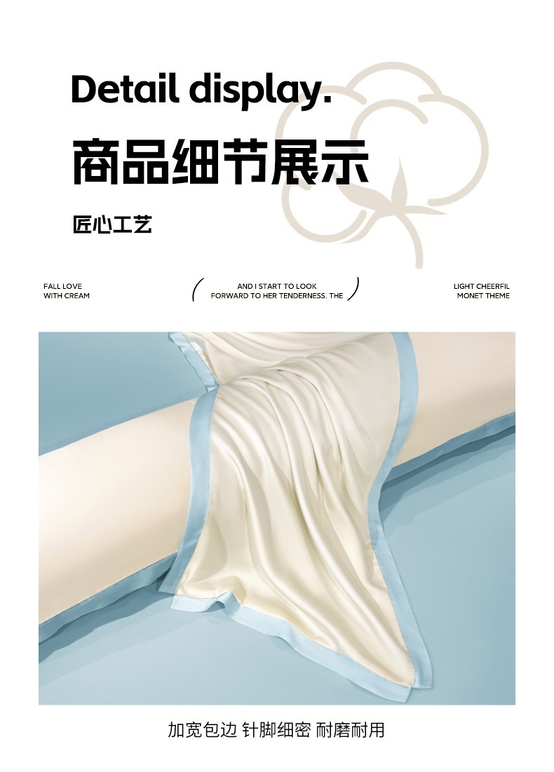 商品名称:梦舒羽 2025新款水洗真丝宽边双人枕套 奶油浅蓝