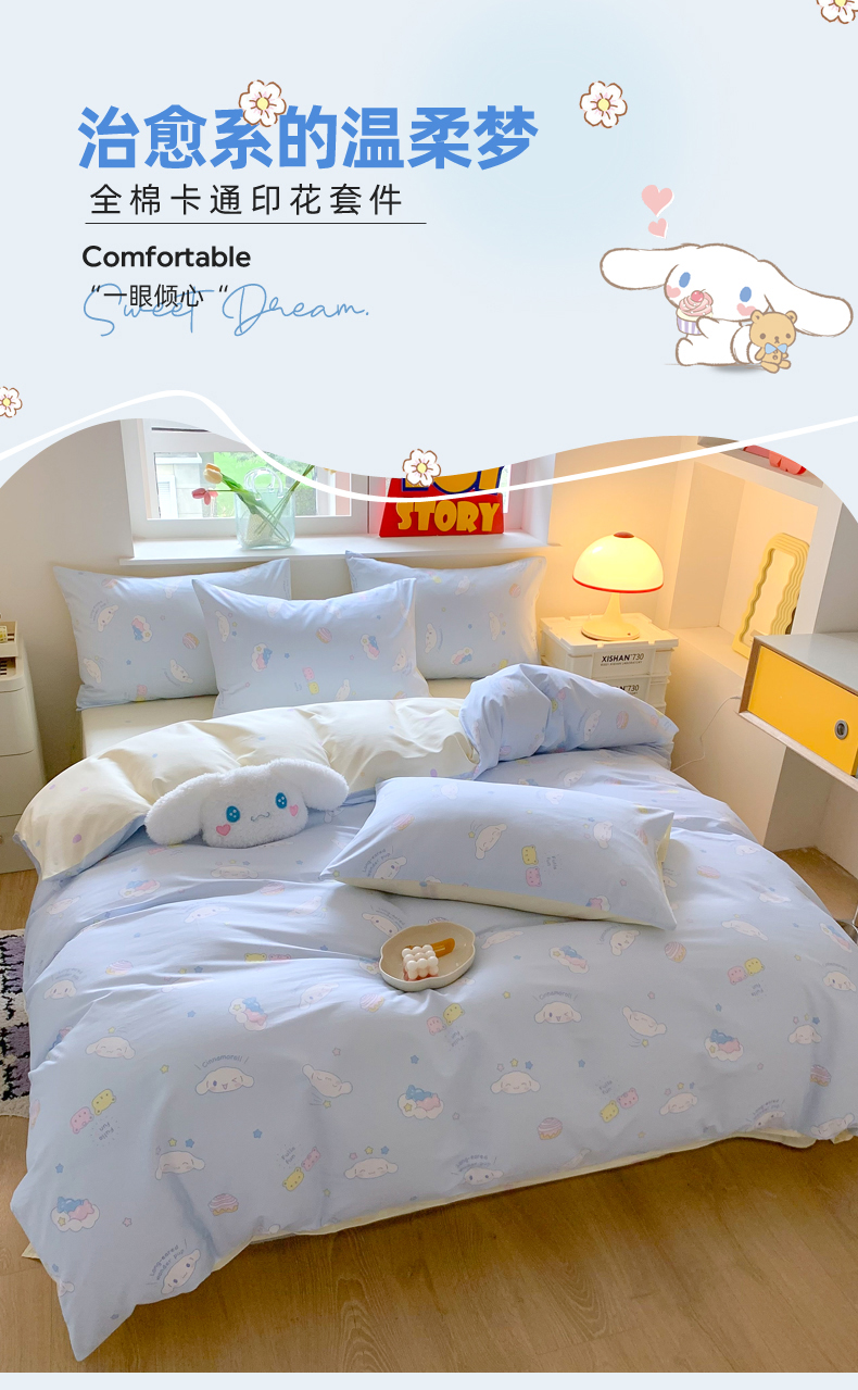 当前位置: 91家纺网 > 商品网购 > 床品套件 > 四件套 > 全棉普通四件套 > 玉元坊 2025年5月新品三丽鸥全棉床单纯棉床裙床笠三四件套简约基础款式-大耳狗简约款式 云朵大耳狗【简约款】