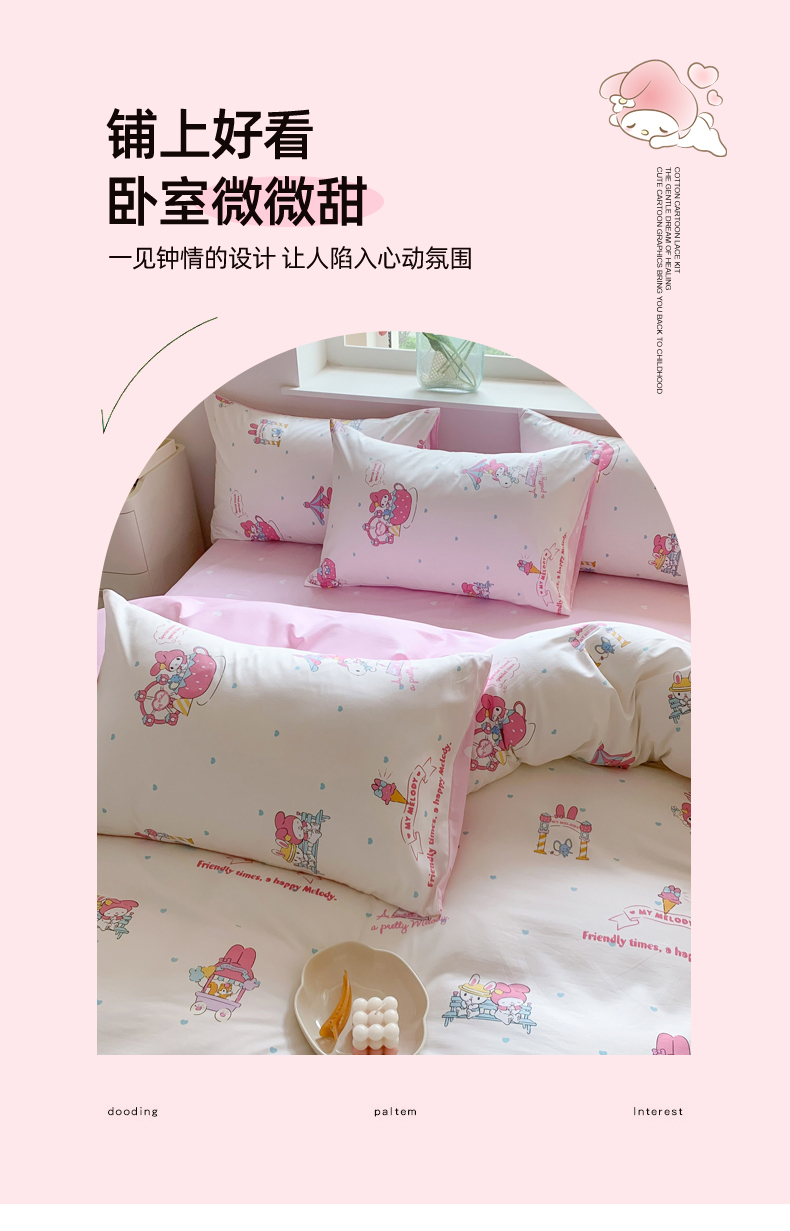 当前位置: 91家纺网 > 商品网购 > 床品套件 > 四件套 > 全棉普通四件套 > 玉元坊 2025年5月新品三丽鸥全棉床单纯棉床裙床笠三四件套简约基础款式-美乐蒂简约款式 开心美乐蒂【简约款】
