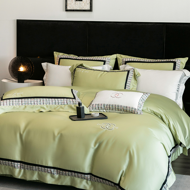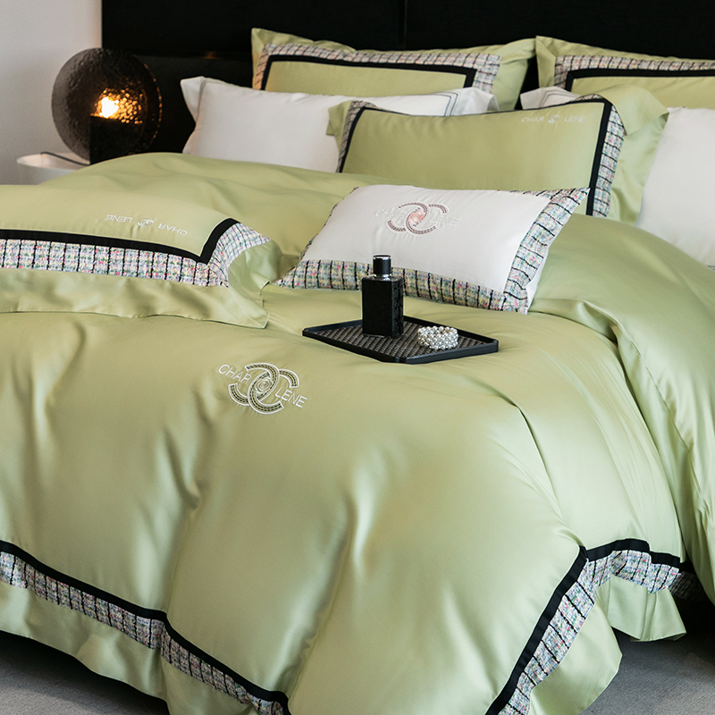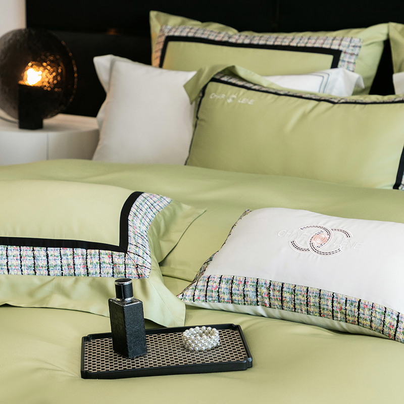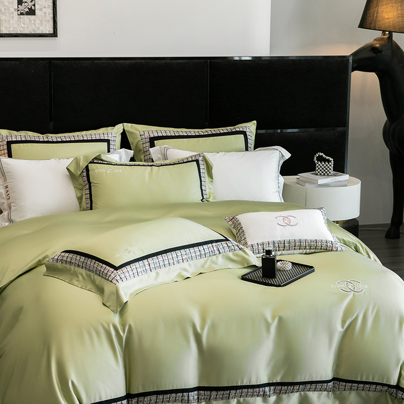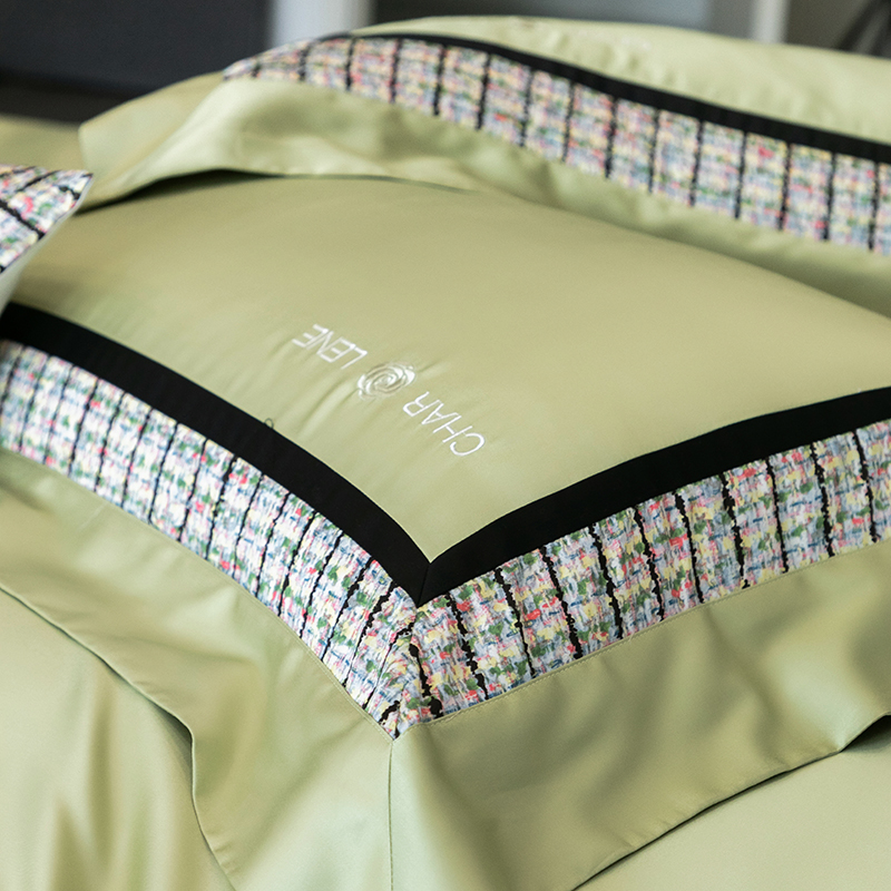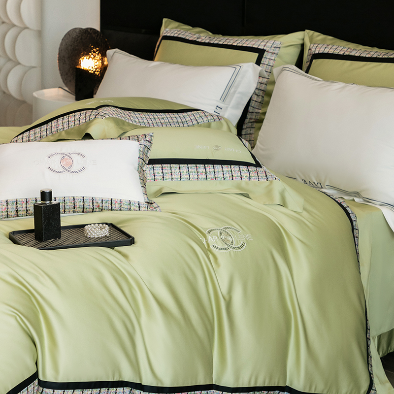 (总)梵品匠心 2025新款AB版小香风天丝棉色布四件套 香奈雅韵,香奈雅韵-绿色