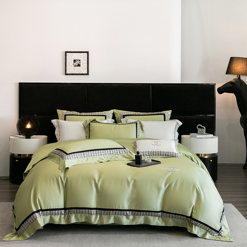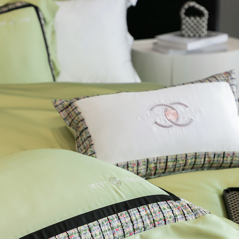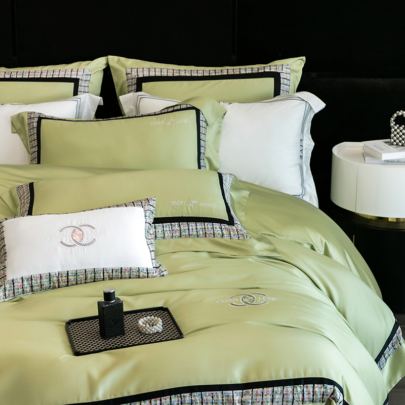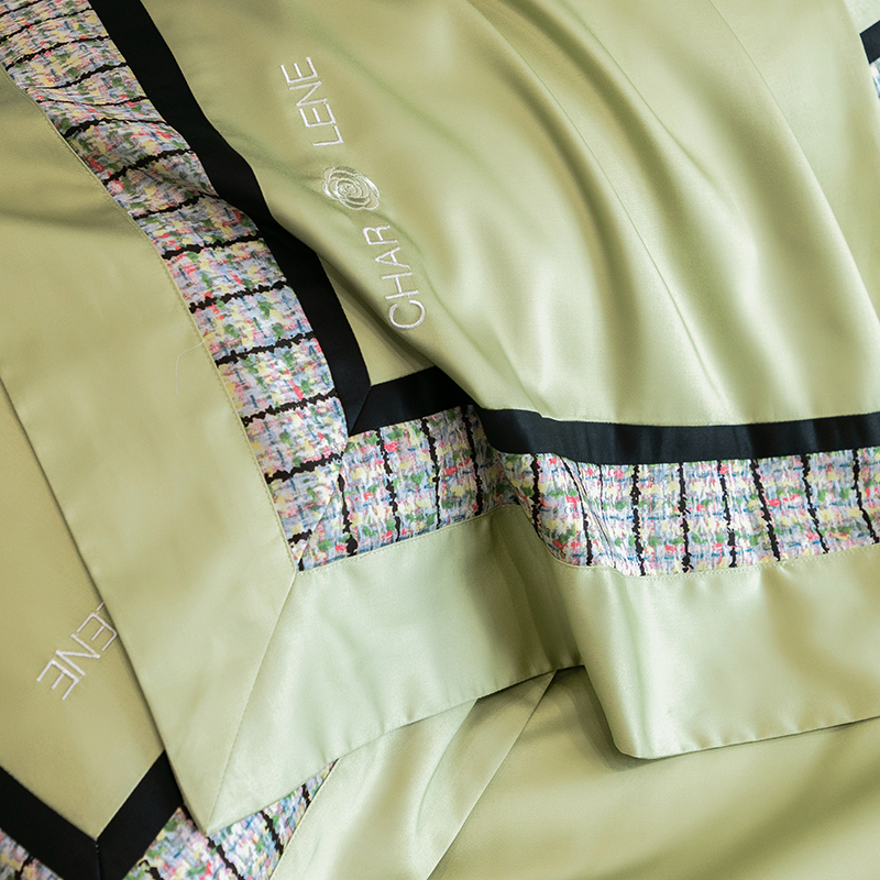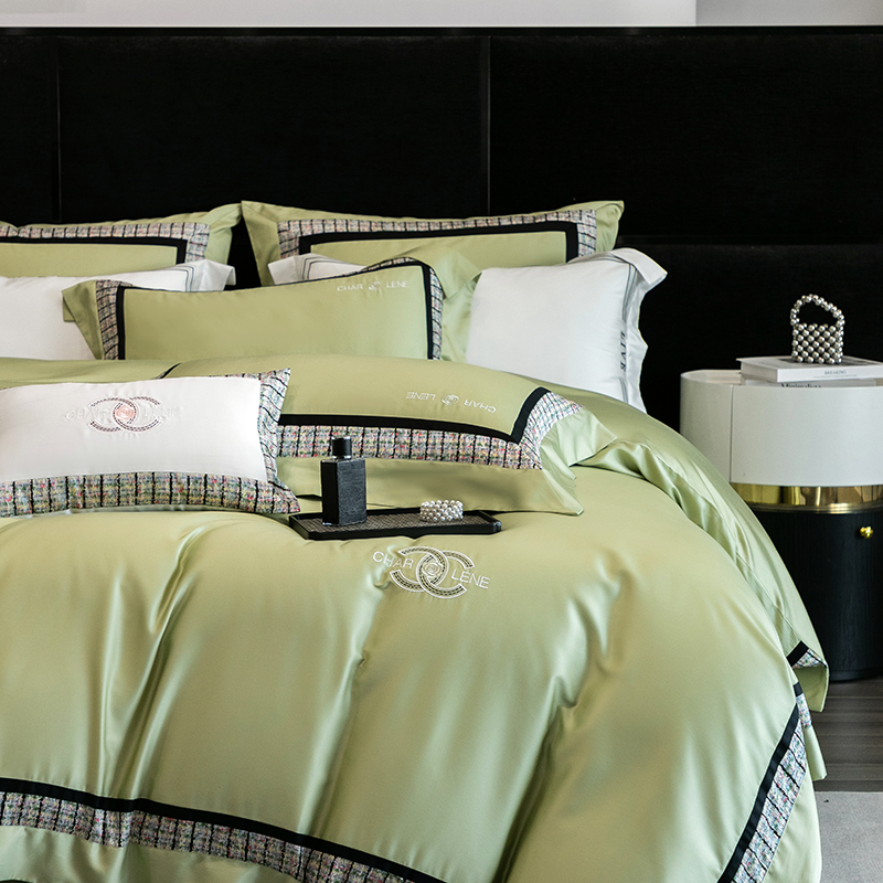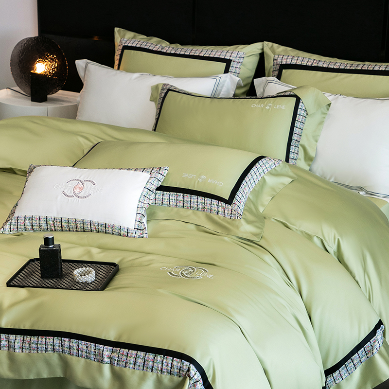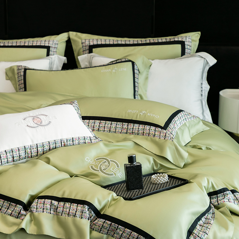 (总)梵品匠心 2025新款AB版小香风天丝棉色布四件套 香奈雅韵,香奈雅韵-绿色
