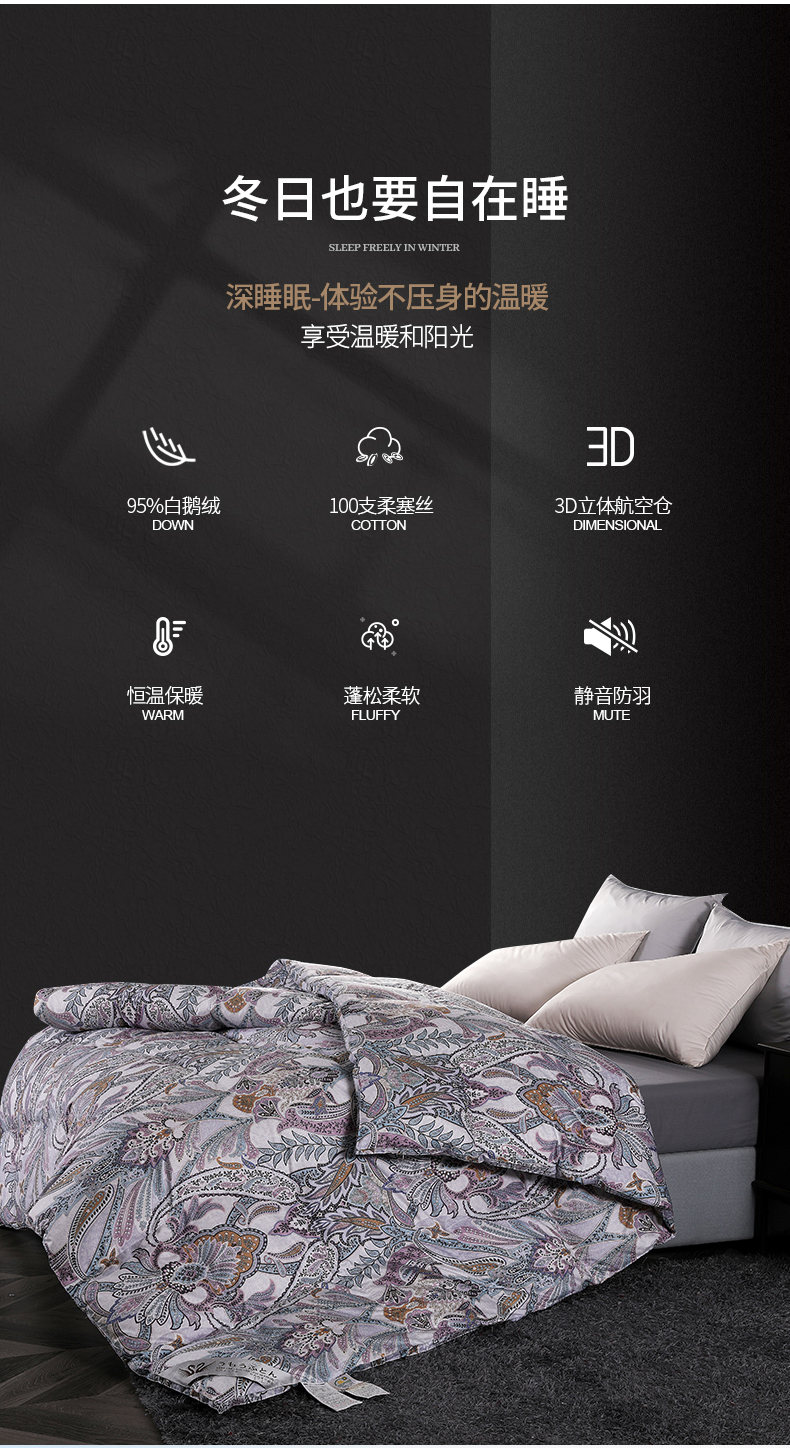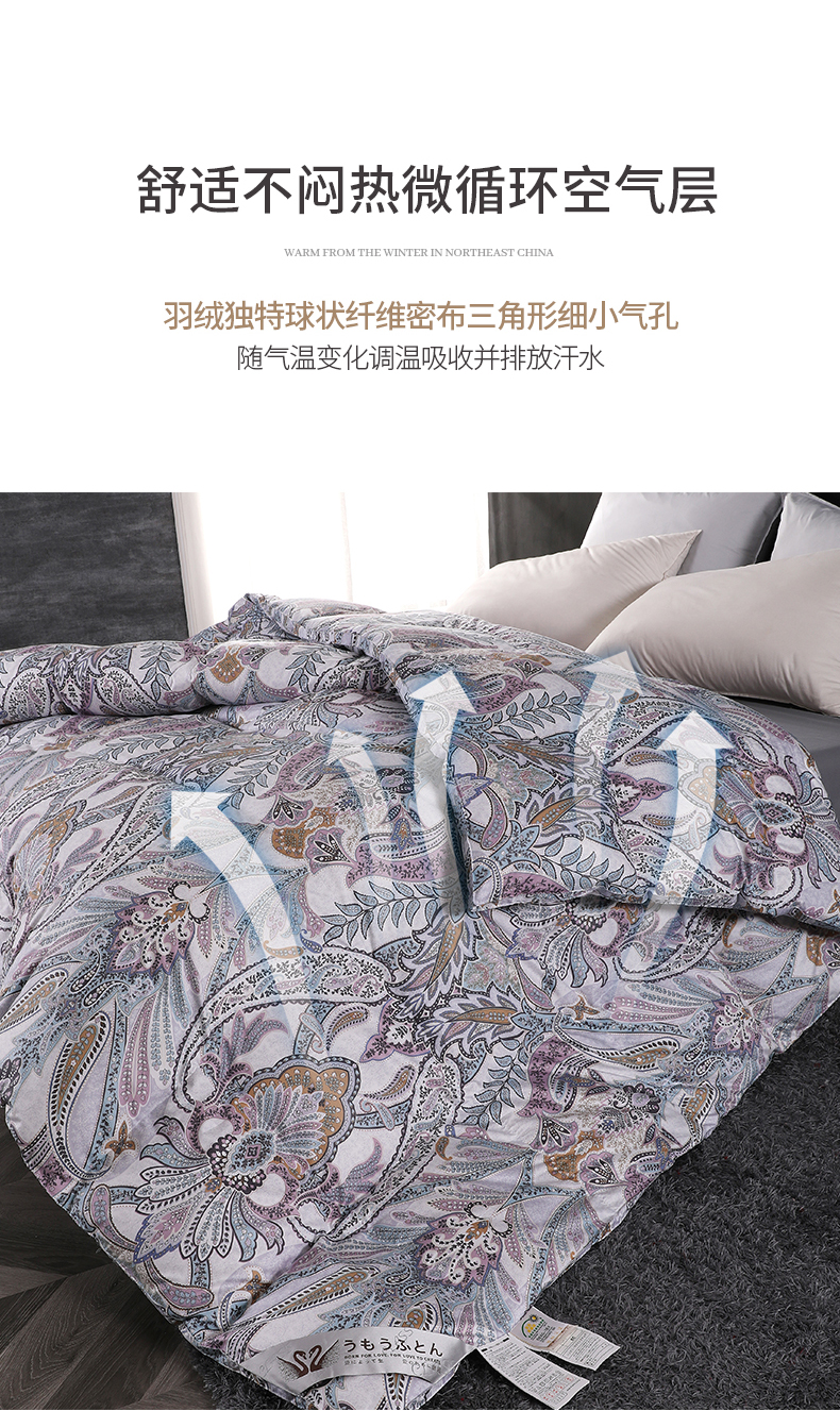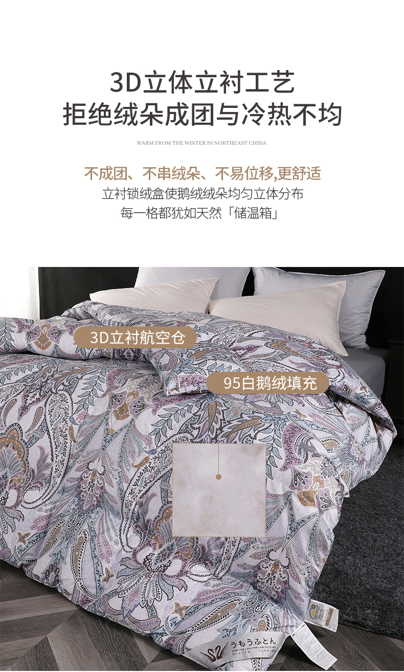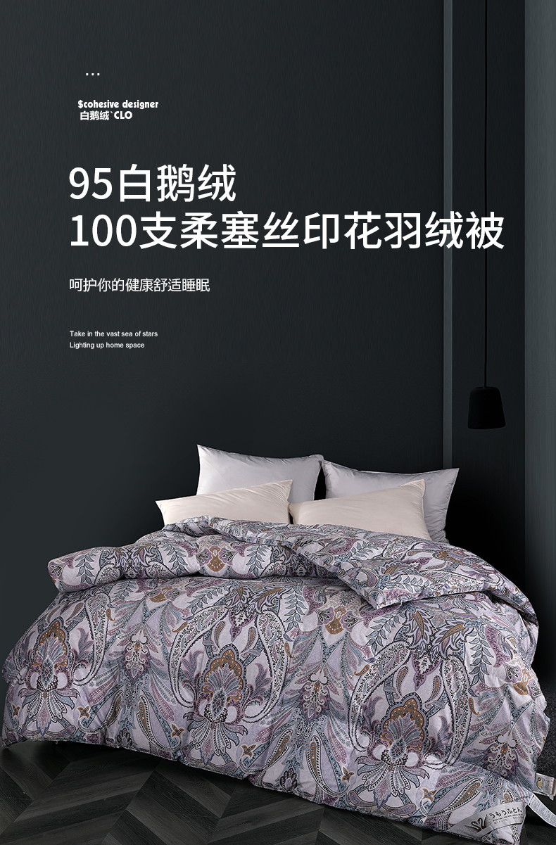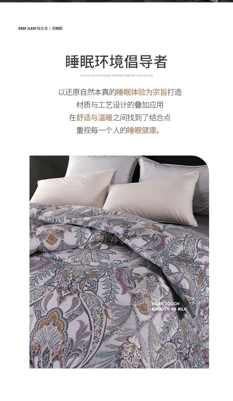 • 91家纺网 家纺一手货源 找家纺 呆头鹅羽绒工厂店 2025新款100支柔塞丝印花羽绒被 白鹅绒鸭绒被子被芯羽绒工厂店 羽翔宝兰
