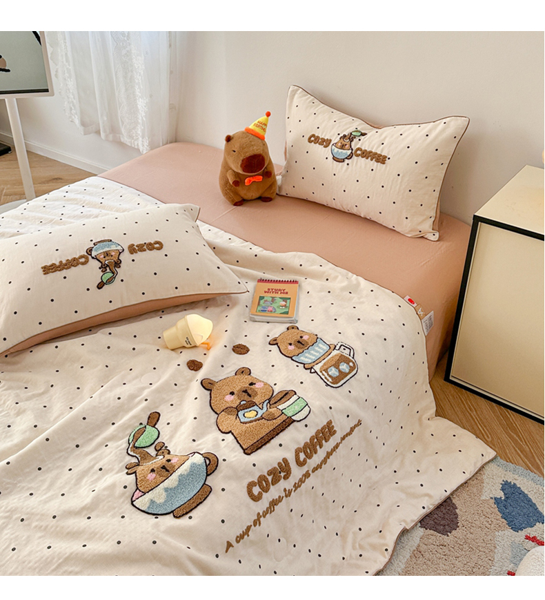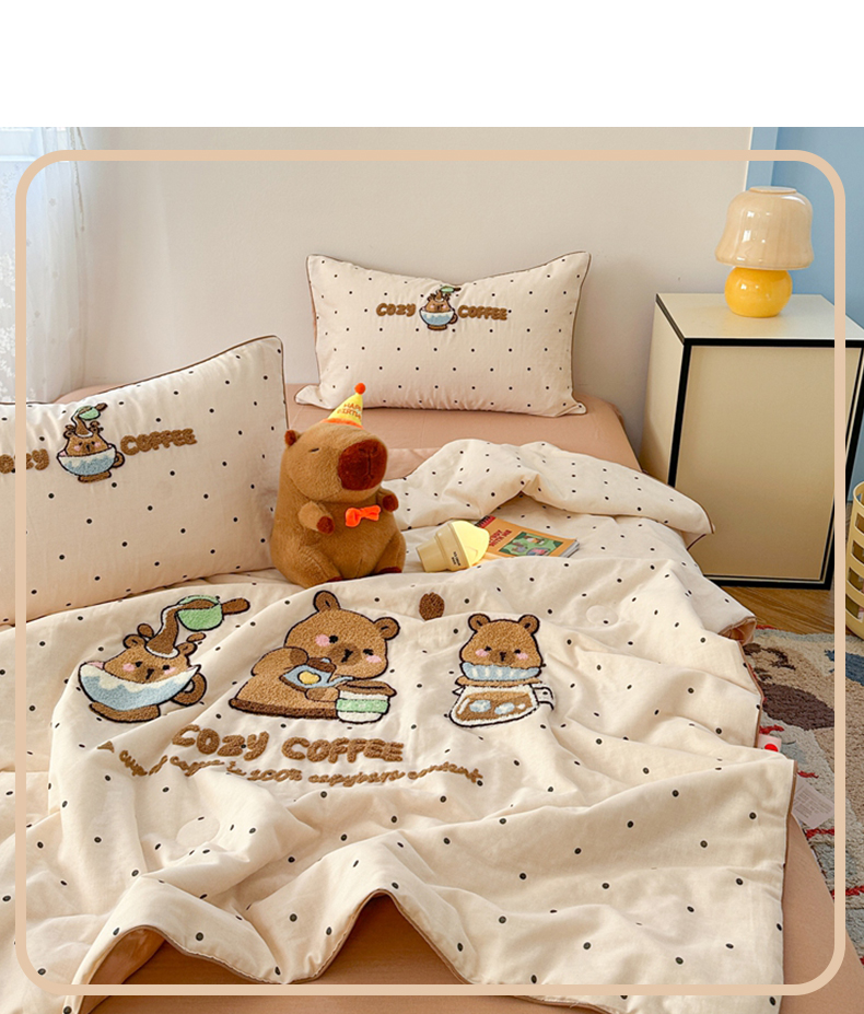 眠屿家纺 2025新款A类全棉双层纱单夏被四件套 卡皮咖啡