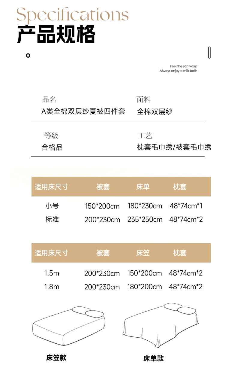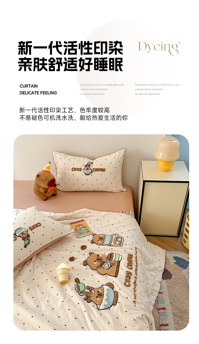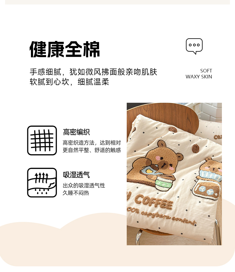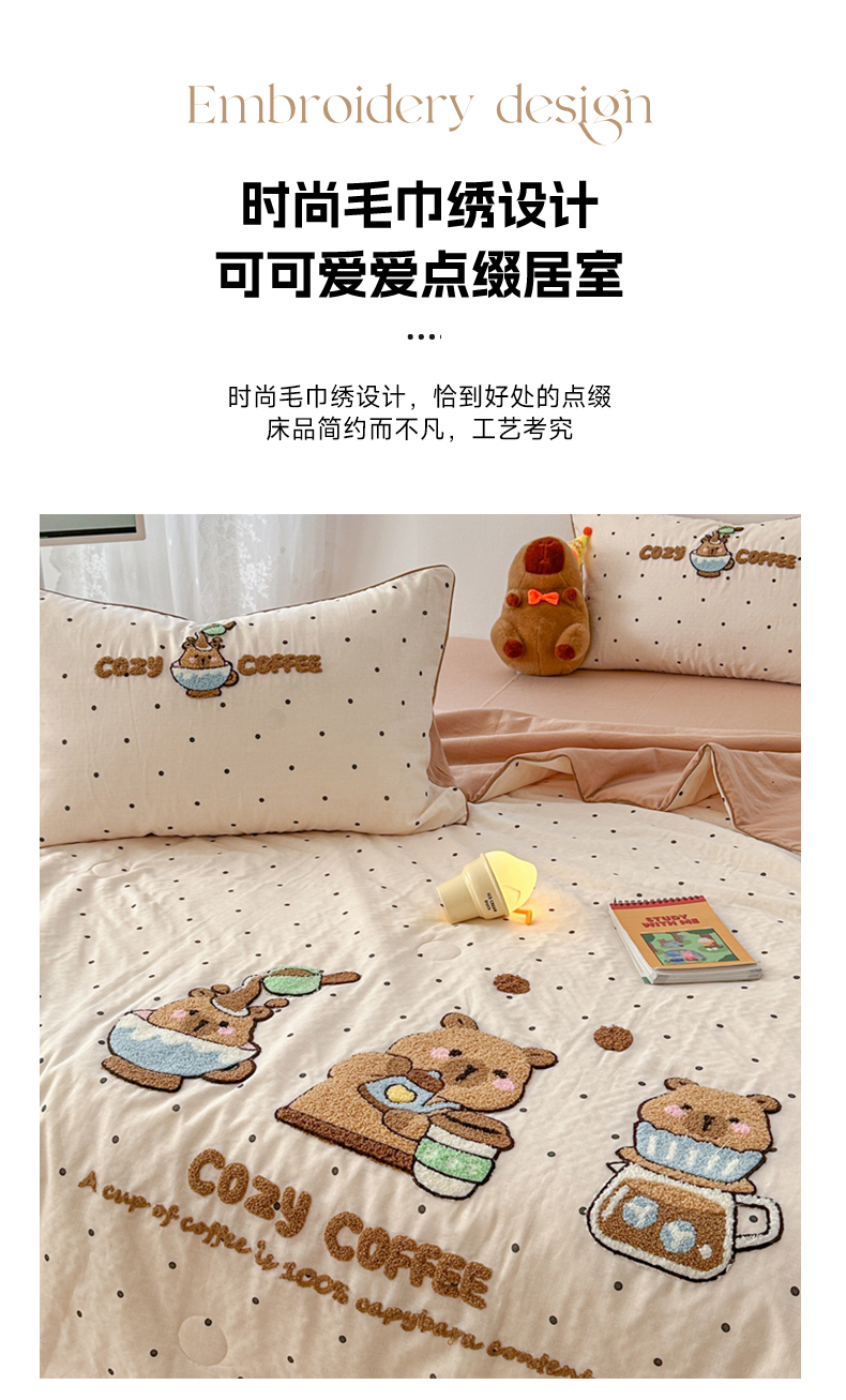 商品名称:眠屿家纺 2025新款A类全棉双层纱单夏被四件套 卡皮咖啡