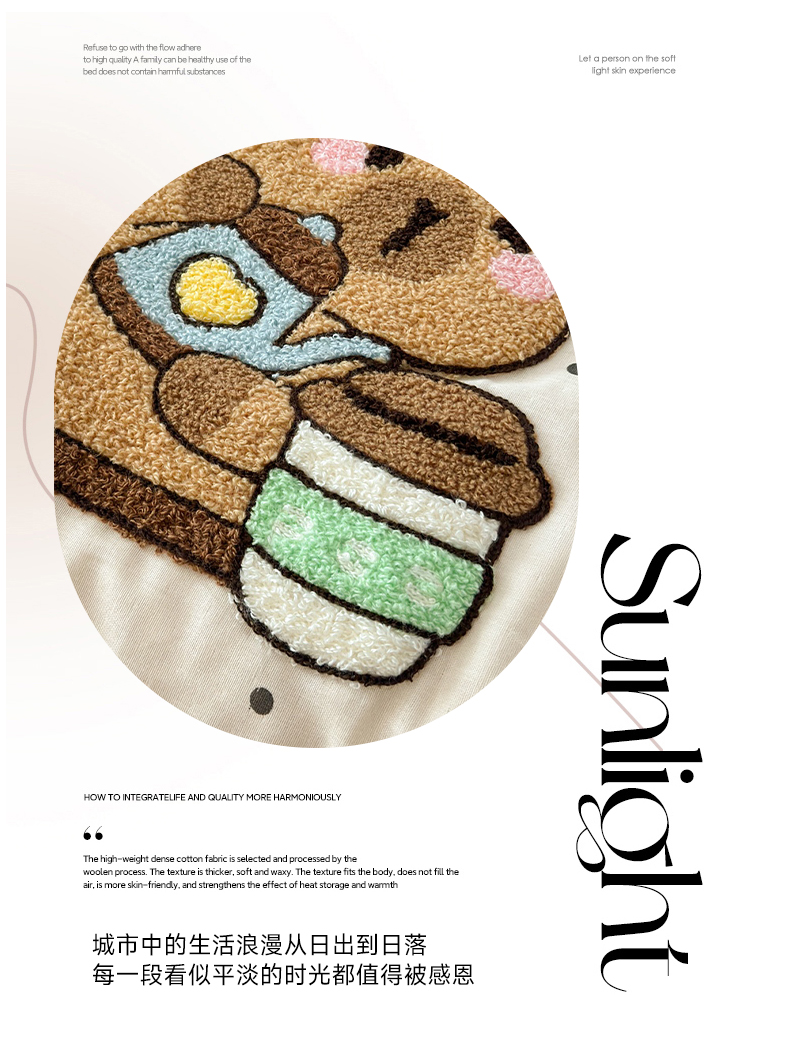 (总)眠屿家纺 2025新款加厚牛奶绒毛巾绣四件套,乐趣,面包狗,玩偶,玩泡泡