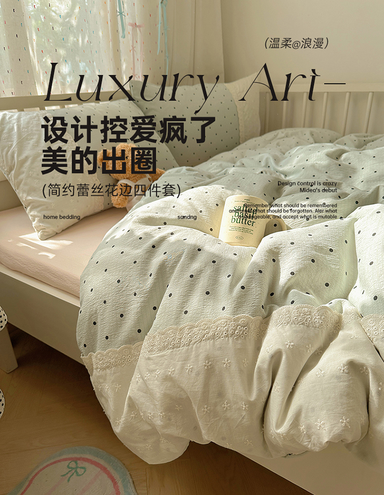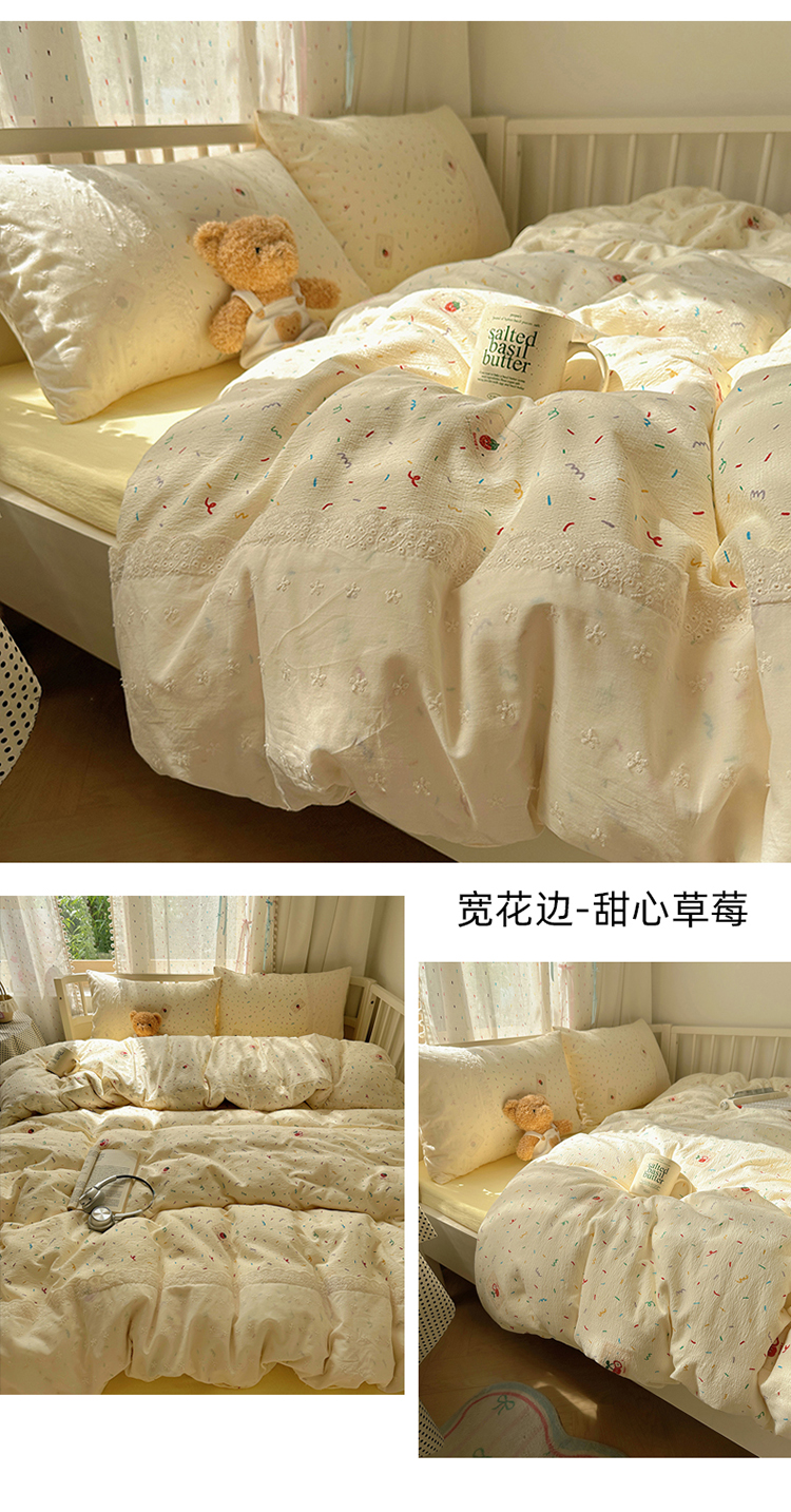 商品名称:(总)沐芷 2025 蕾丝花边双层纱四件套公主风床单被套宿舍三件套少女心