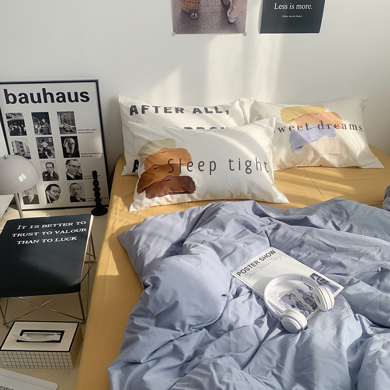 商品名称:柚可家居 2024新款定版枕套水洗棉四件套 美式奶泡 粉紫+黄