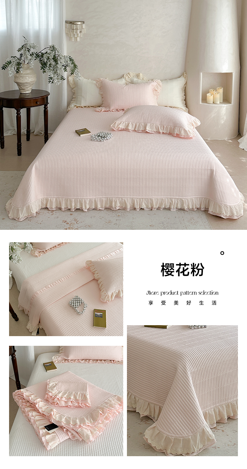 (总)琳可家居 2026新款60S长绒棉花边床盖A类双面全棉高温水洗-蝶恋系列,蝶恋-暖白,蝶恋-卡其,蝶恋-雾粉,组合