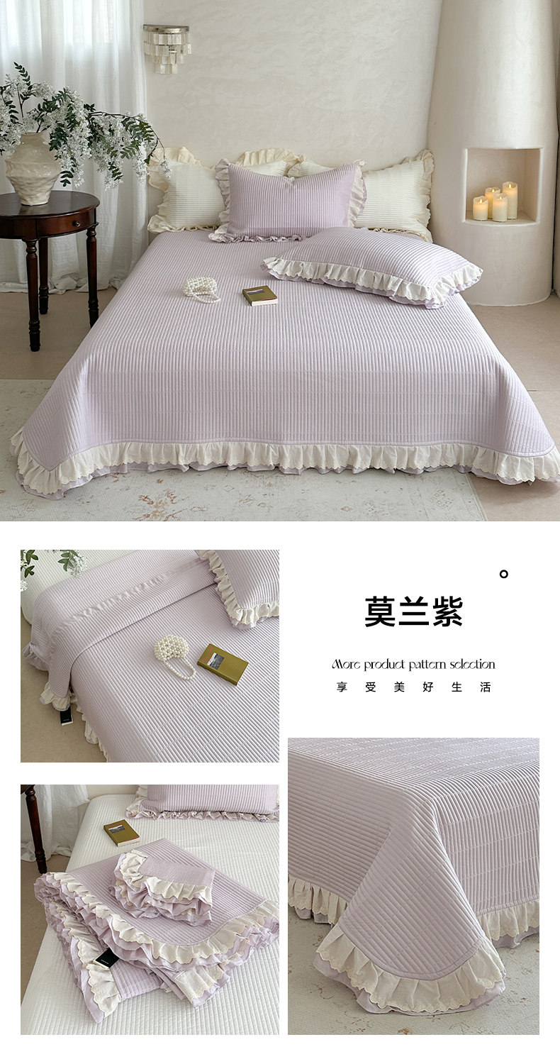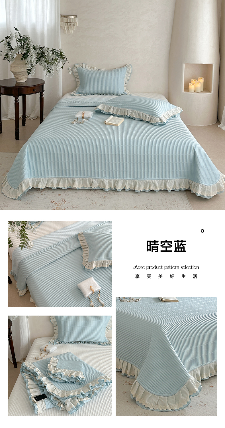 2022新款40S纯棉水洗棉韩版全棉荷叶边夹棉绗缝床盖三件套,海盐蓝,静谧灰,抹茶绿,奶油黄,千黛紫,浅豆沙,悠悠粉,云朵白,马卡桔,青草绿
