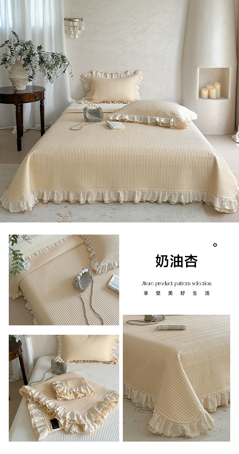 商品名称:(总)琳可家居 2025新款轻法系列双层花边100%莱赛尔纤维床盖三件套可搭配同款被套(提供买家秀)