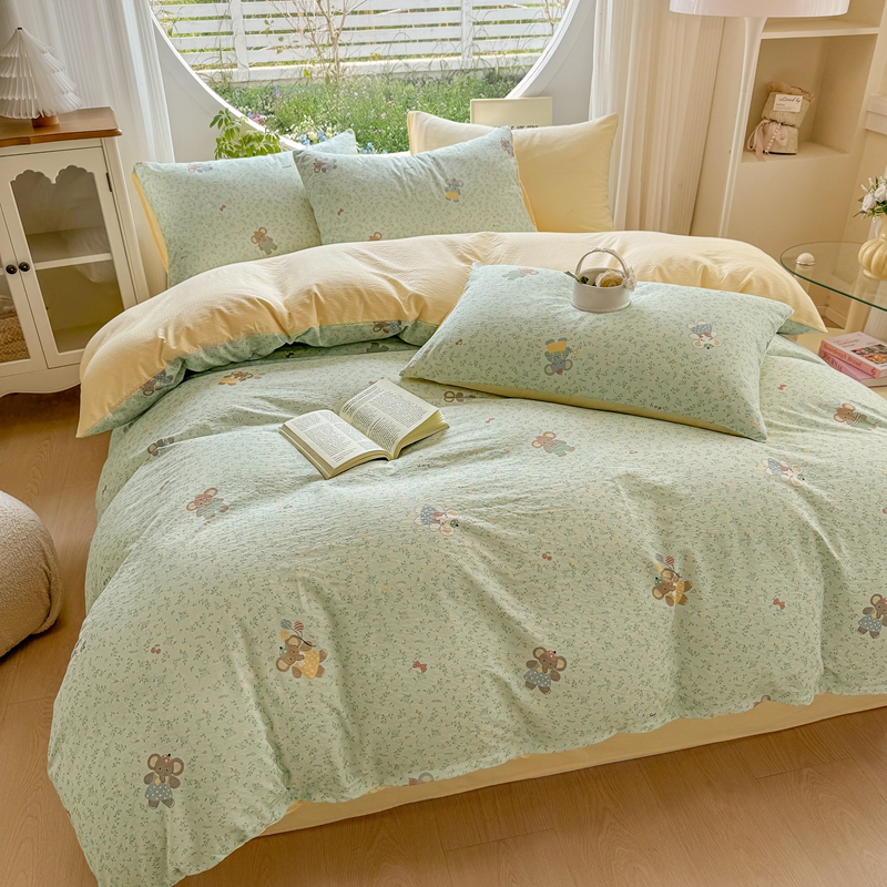 壹号库家纺 2025新款云感木绵皱皱双层纱四件套-简单款 快乐小象