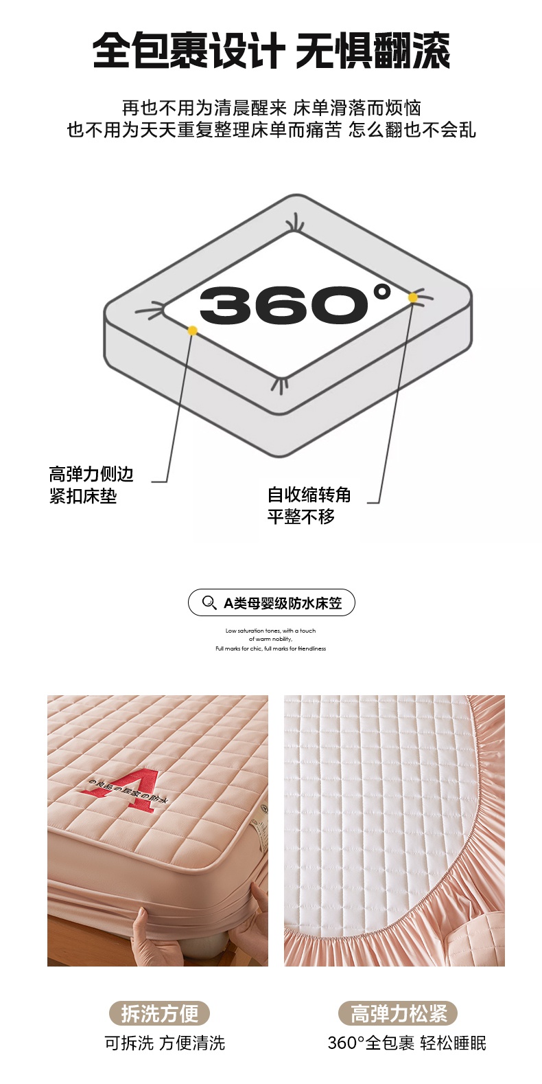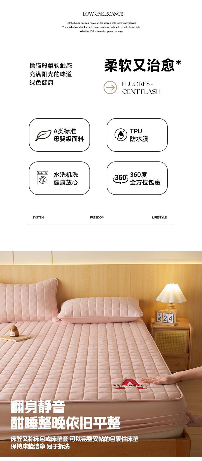 芬晴家纺 2025新款A类母婴级防水床笠 A-豆沙粉