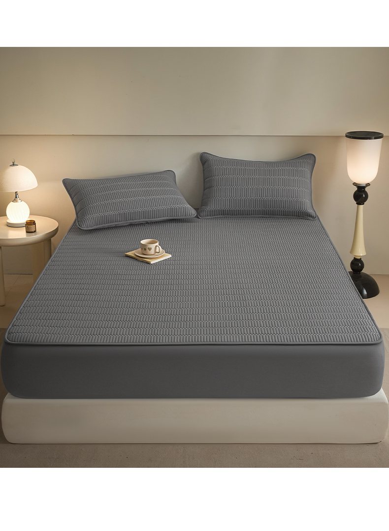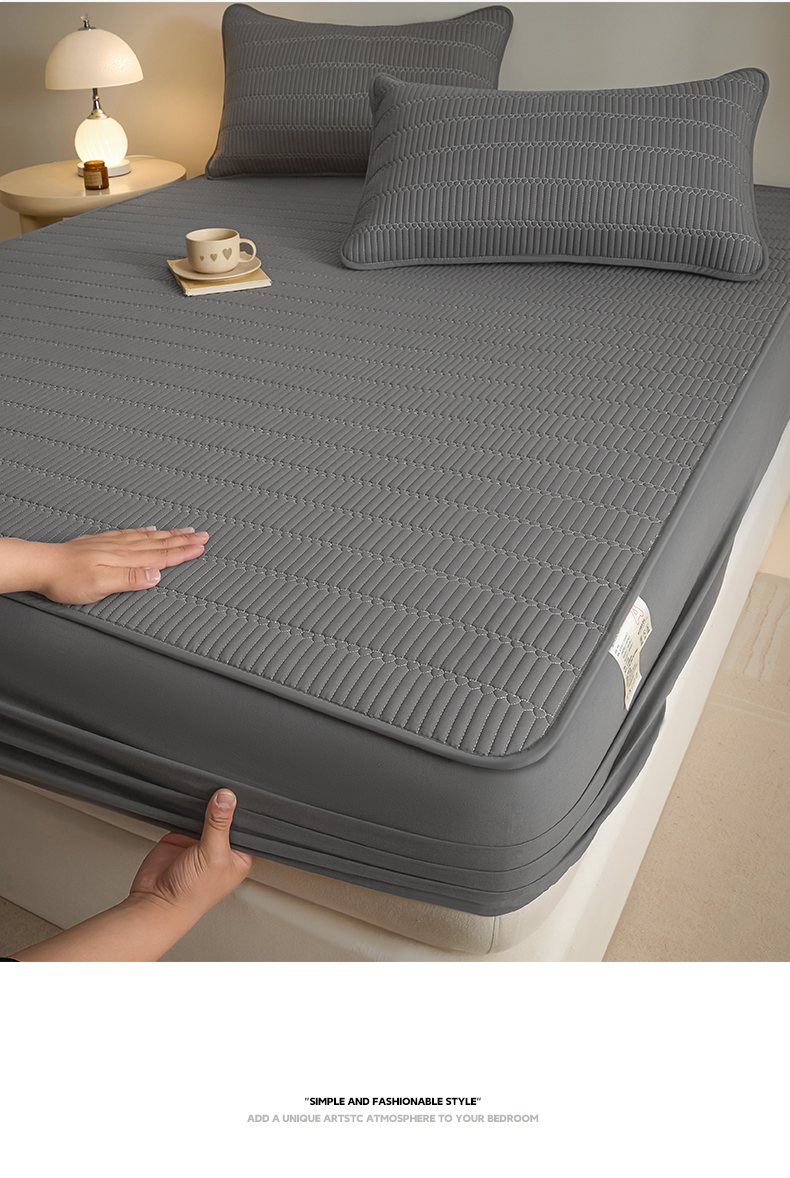 芬晴家纺 2025新款A类全棉水洗棉夹棉床笠-甜心 甜心-岩灰